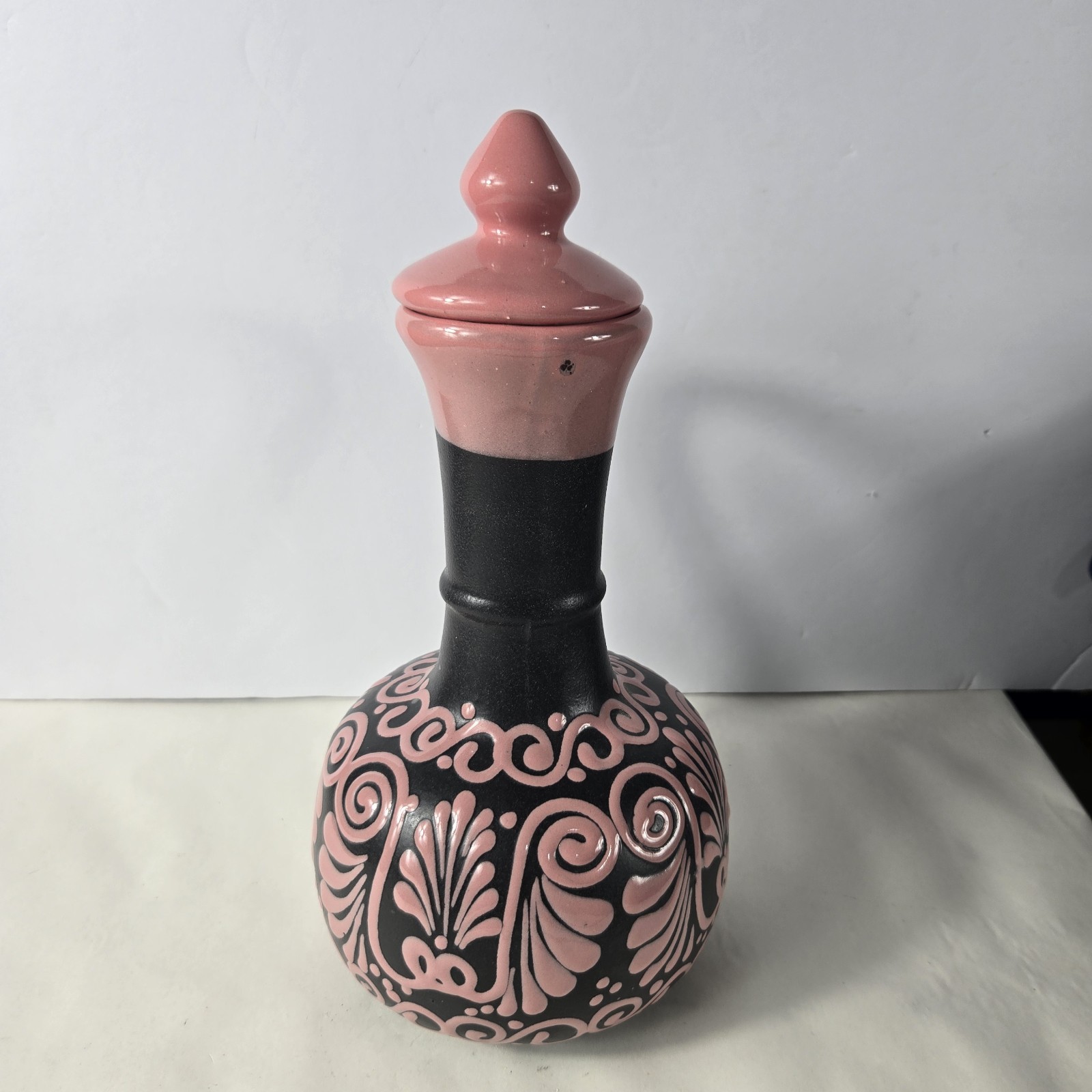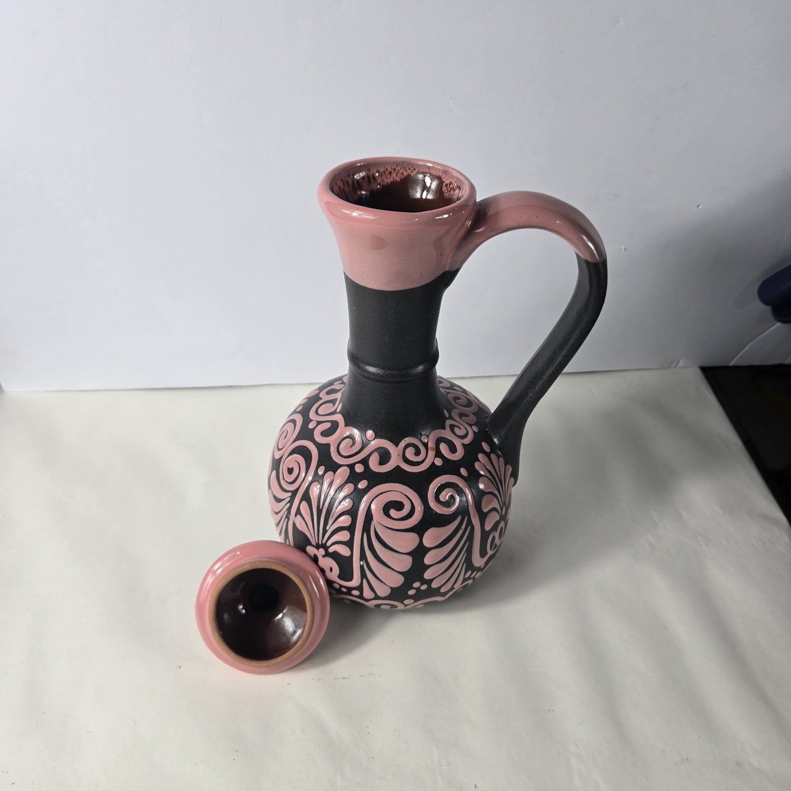 Black And Pink Talavera Pitcher Handmade Mexican Art 12 X 7.5 Inches