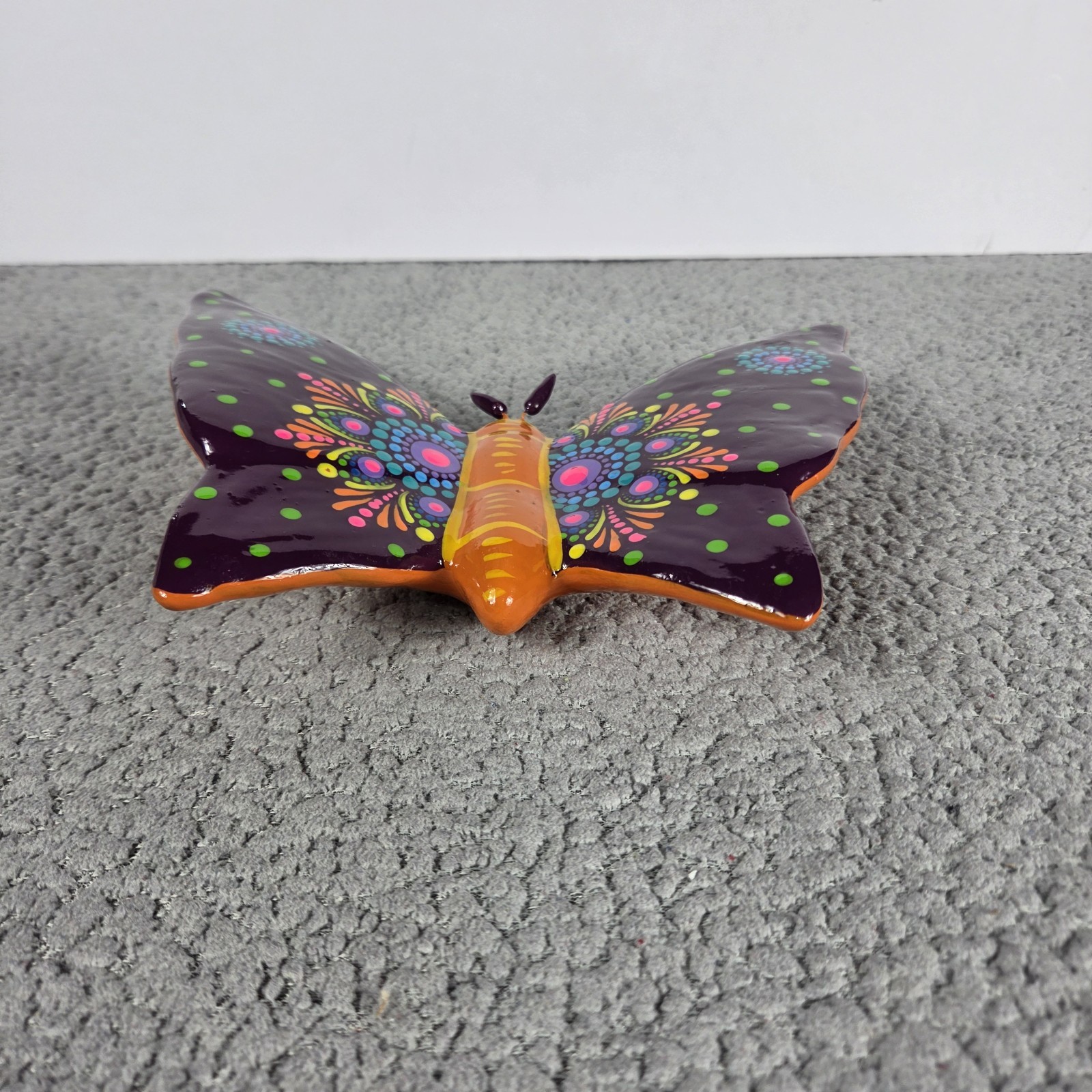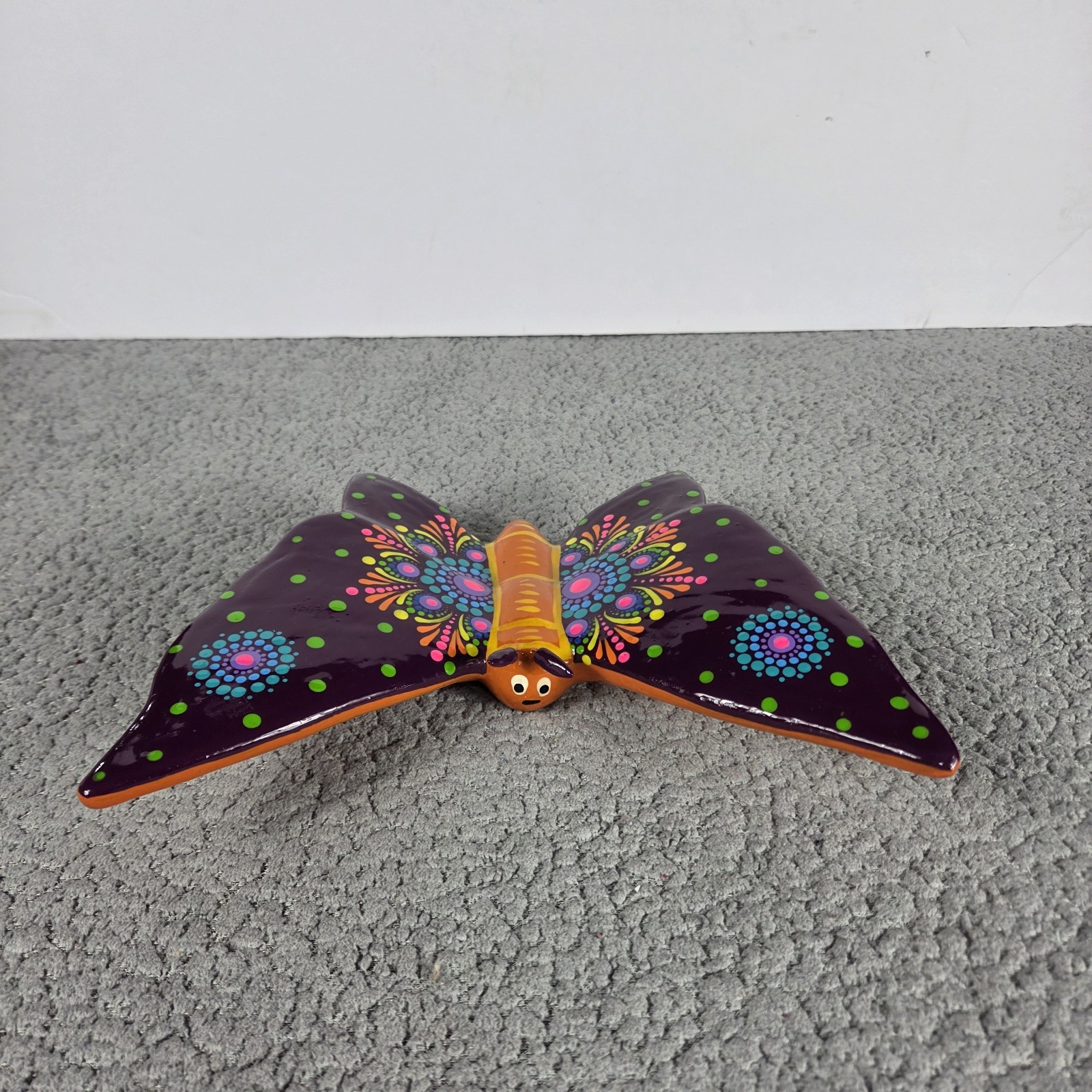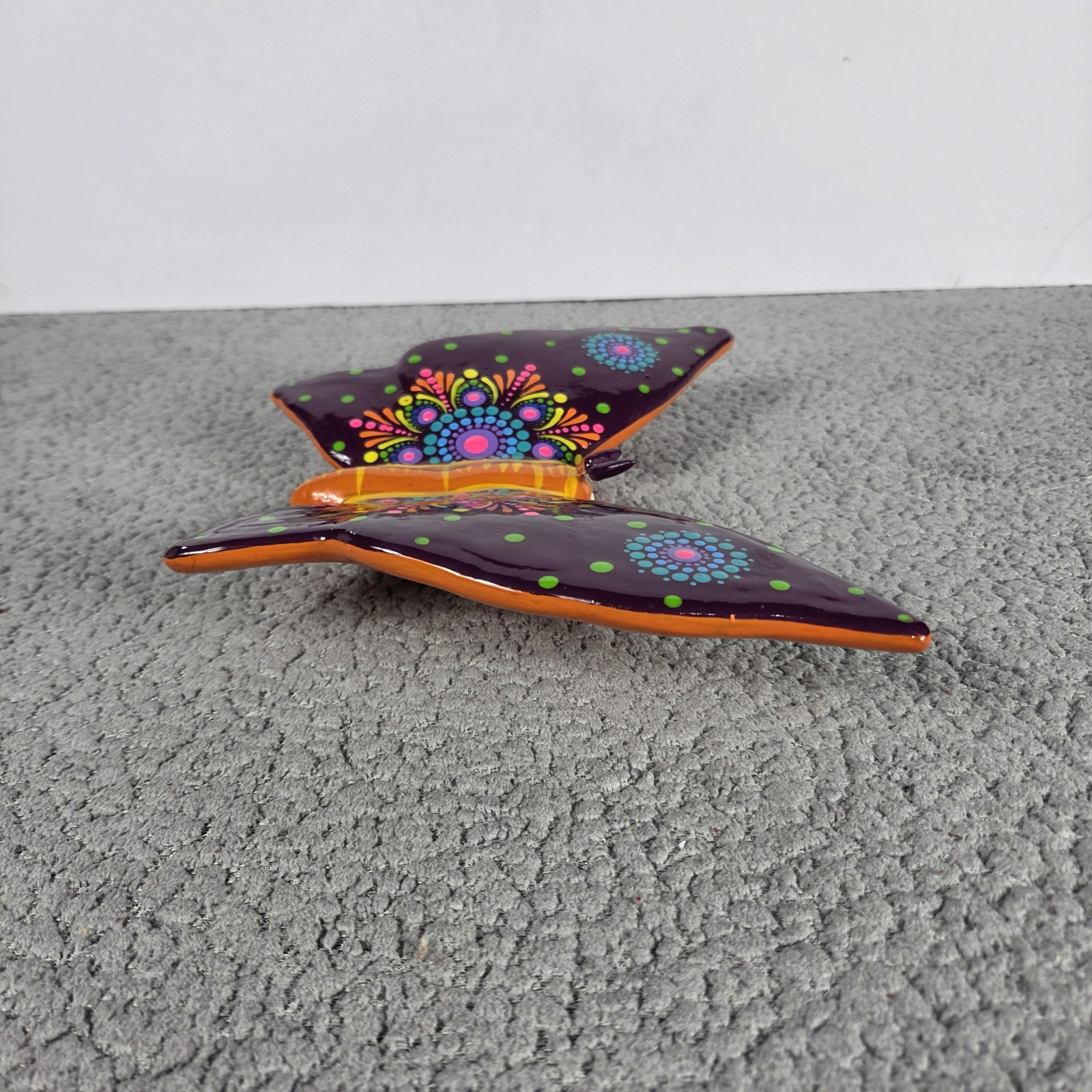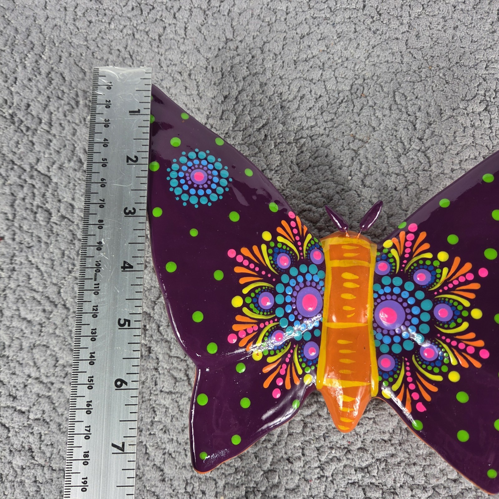 Clay Butterfly Mexican Handmade Art Wall Hanging 9" Wide X 7" Tall