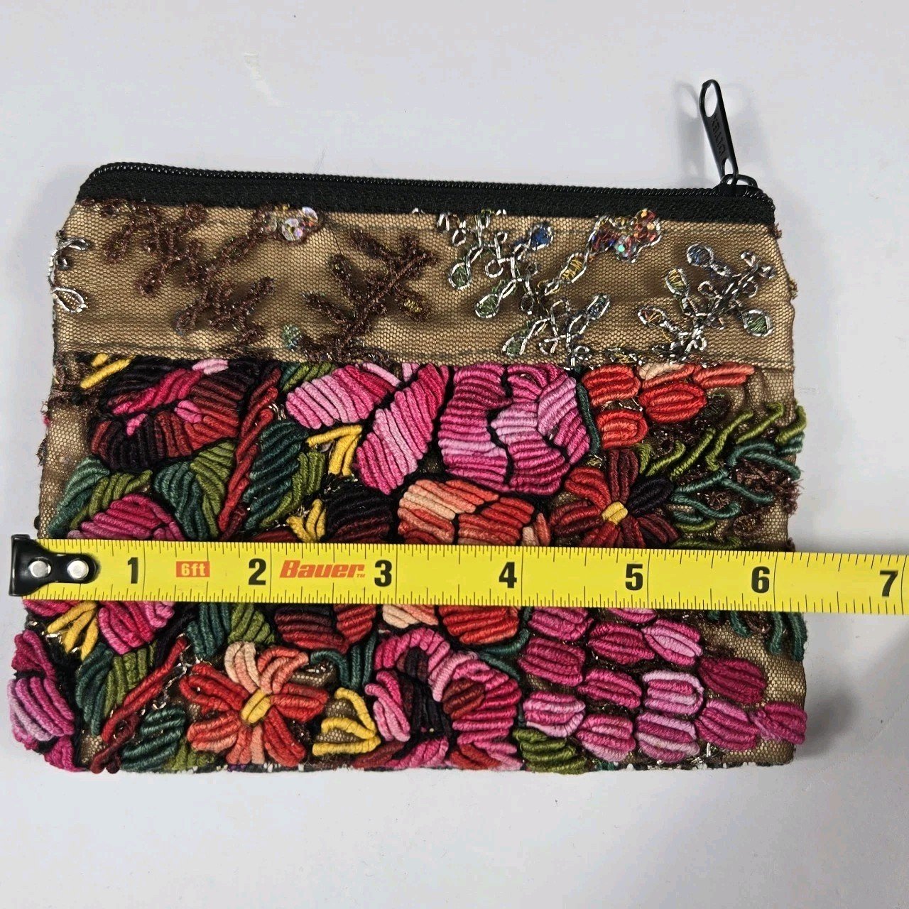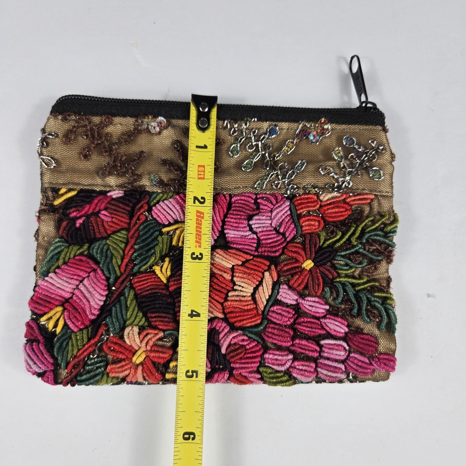 This product is a hand-embroidered coin purse made in Mexico. The design showcases traditional Mexican art and craftsmanship, making it a unique and authentic accessory. Measuring 6 x 5 inches, this coin purse is the perfect size to hold small items such as coins, keys, or other trinkets. The intricate embroidery adds a touch of charm and personality to any outfit, making it a fashionable and functional addition to your collection.