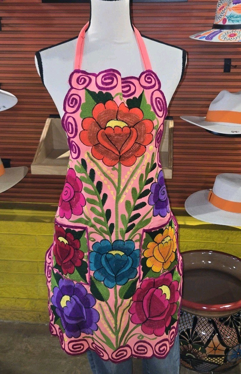 Mexican Embroidered Flora Apron Mandil Bordado One Size
