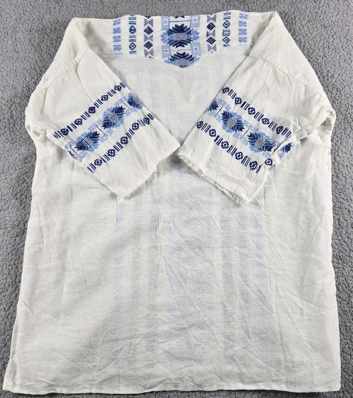 The Mexican White Guayabera Casual Light Blue Embroidery shirt is a stylish and versatile addition to any man's wardrobe. Made of soft cotton with intricate embroidered accents, this short sleeve shirt features a V-neck neckline for a classic look. The shirt is perfect for casual occasions, with a regular fit and all-season design that showcases its ethnic-inspired pattern. Whether you're celebrating a birthday, attending a wedding, or simply want to add a touch of bohemian flair to your outfit, this Guayabera shirt from Mexico is sure to make a statement.