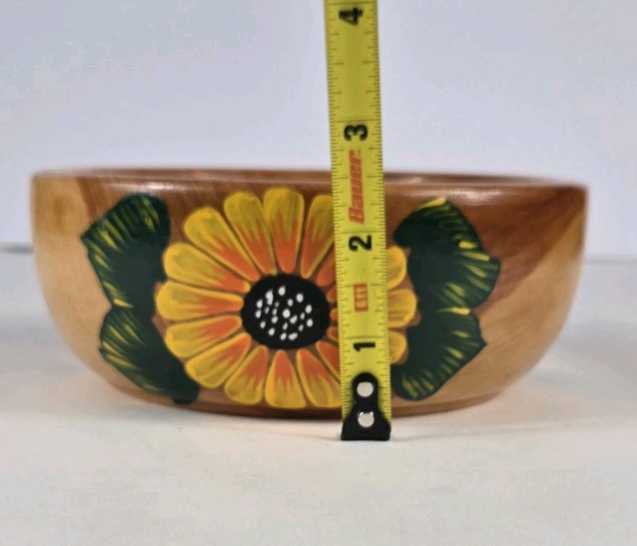 This handpainted wooden bowl features a Mexican art design, making it a unique and decorative piece for your kitchen or home. With dimensions of 6.5" x 2.5", this round bowl is perfect for storing spices, trinkets, or other small items. The brown color and food/kitchen theme add a touch of charm to any space. Made of wood, this original piece is both functional and aesthetically pleasing, making it a versatile addition to your collection.
