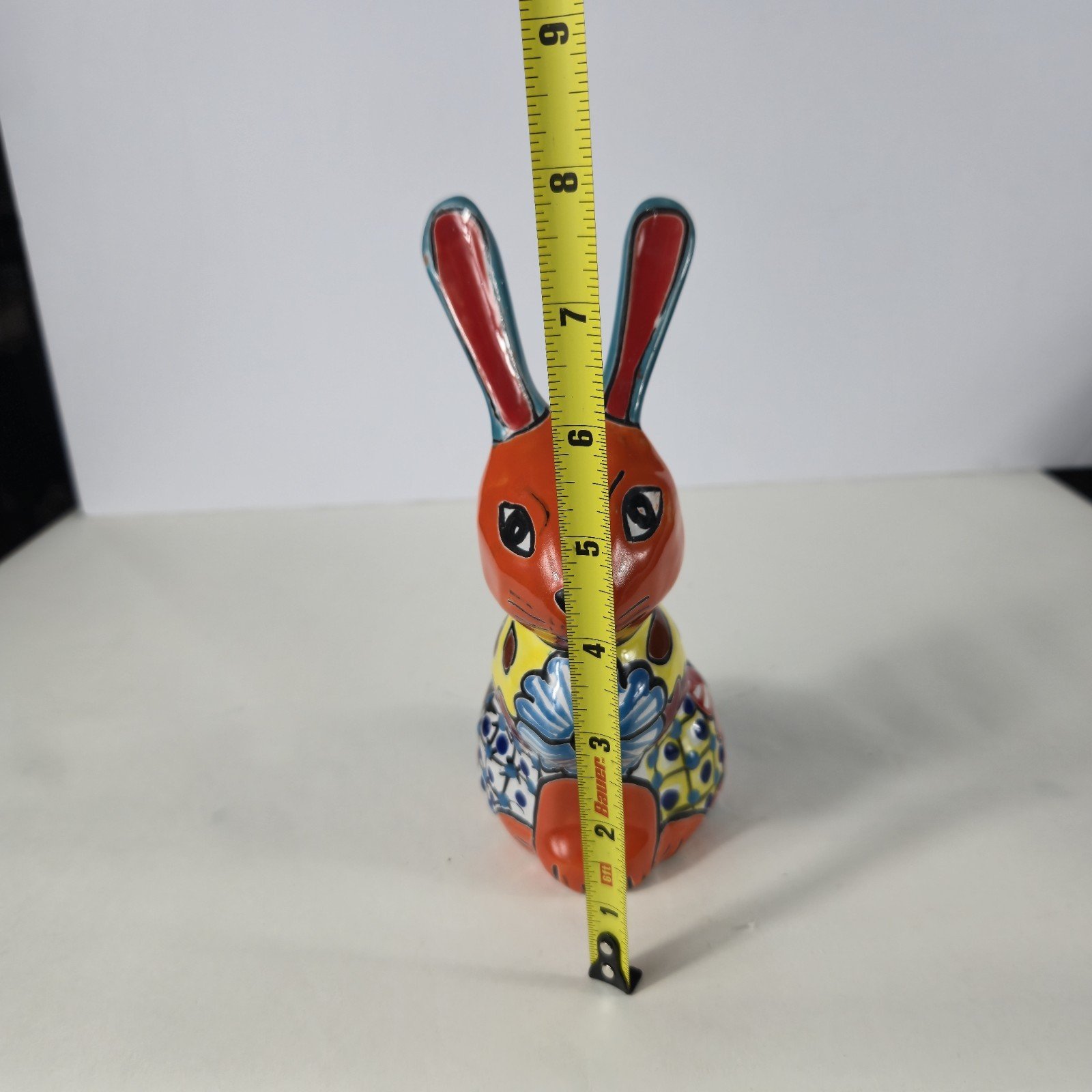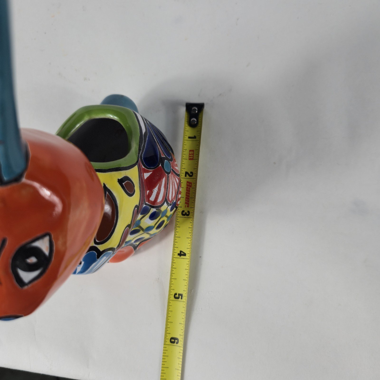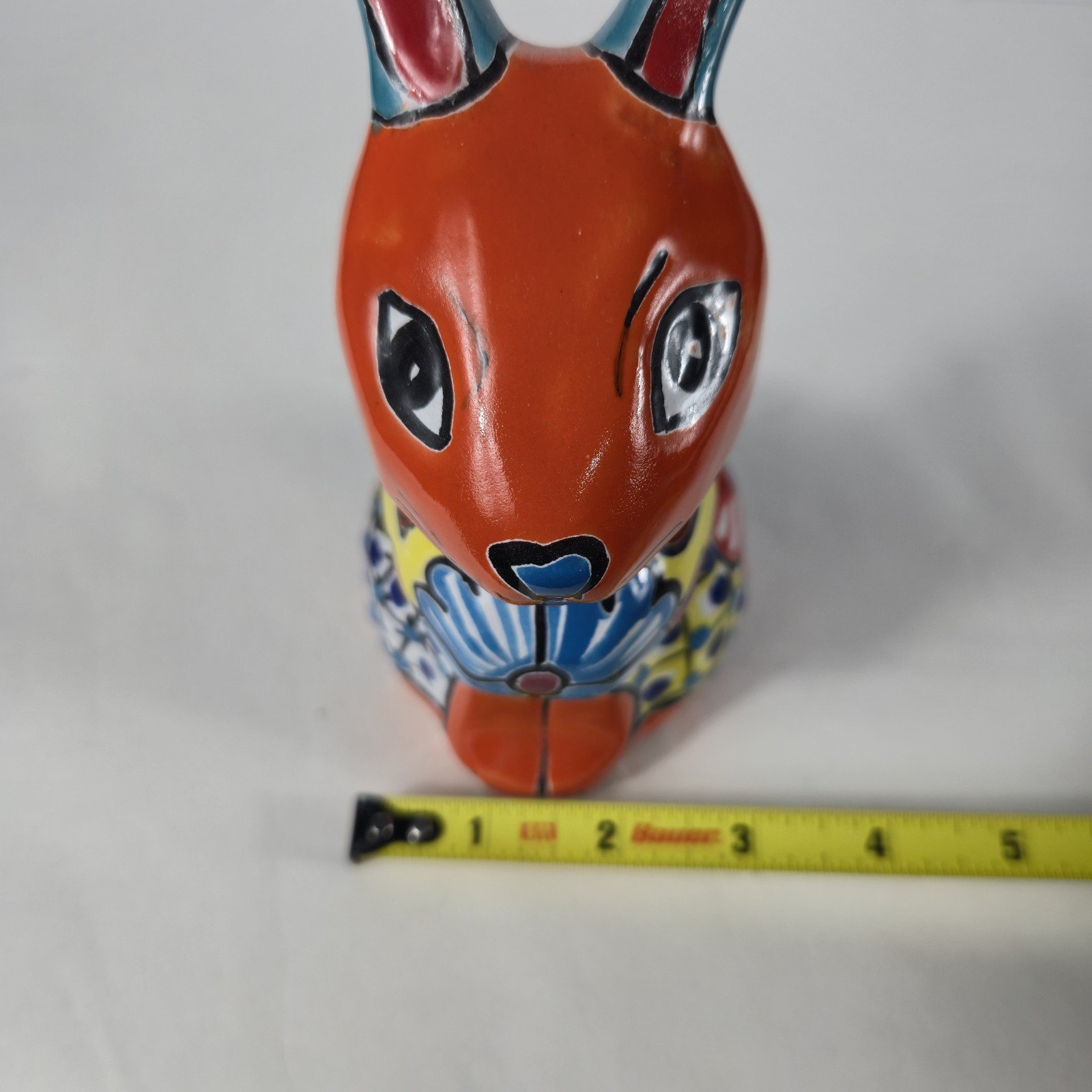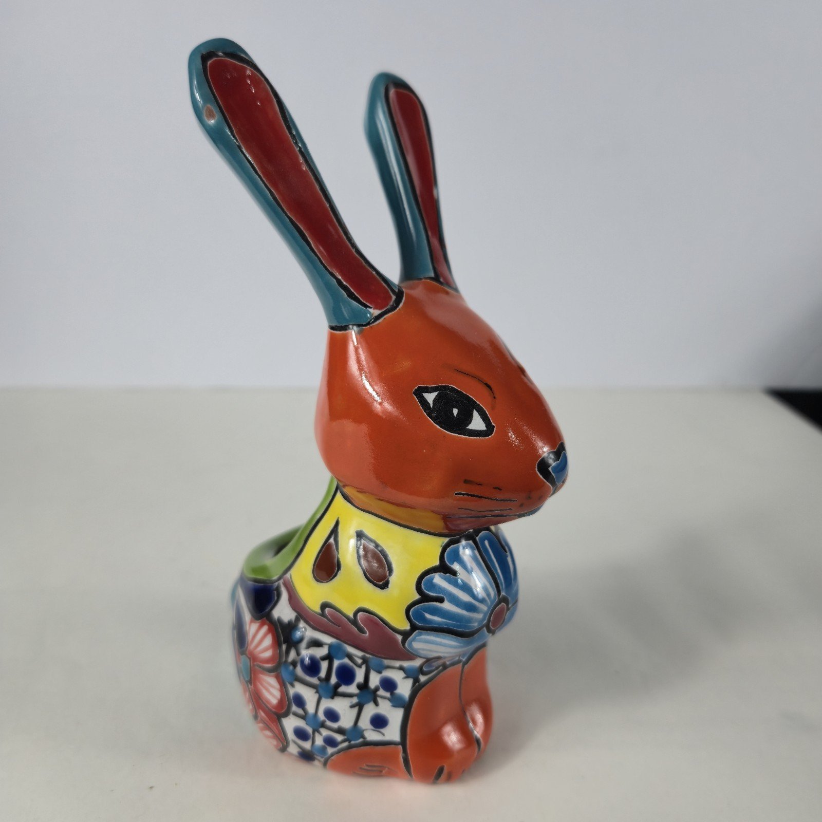The Talavera Bunny Planter is a beautifully hand-painted Mexican art piece perfect for displaying succulants. The intricate design and vibrant colors reflect the traditional Mexican culture, making it a unique and charming addition to any collection. Made in Mexico, this unbranded piece showcases the talent and craftsmanship of Mexican artisans, adding a touch of authenticity and artistry to any space.