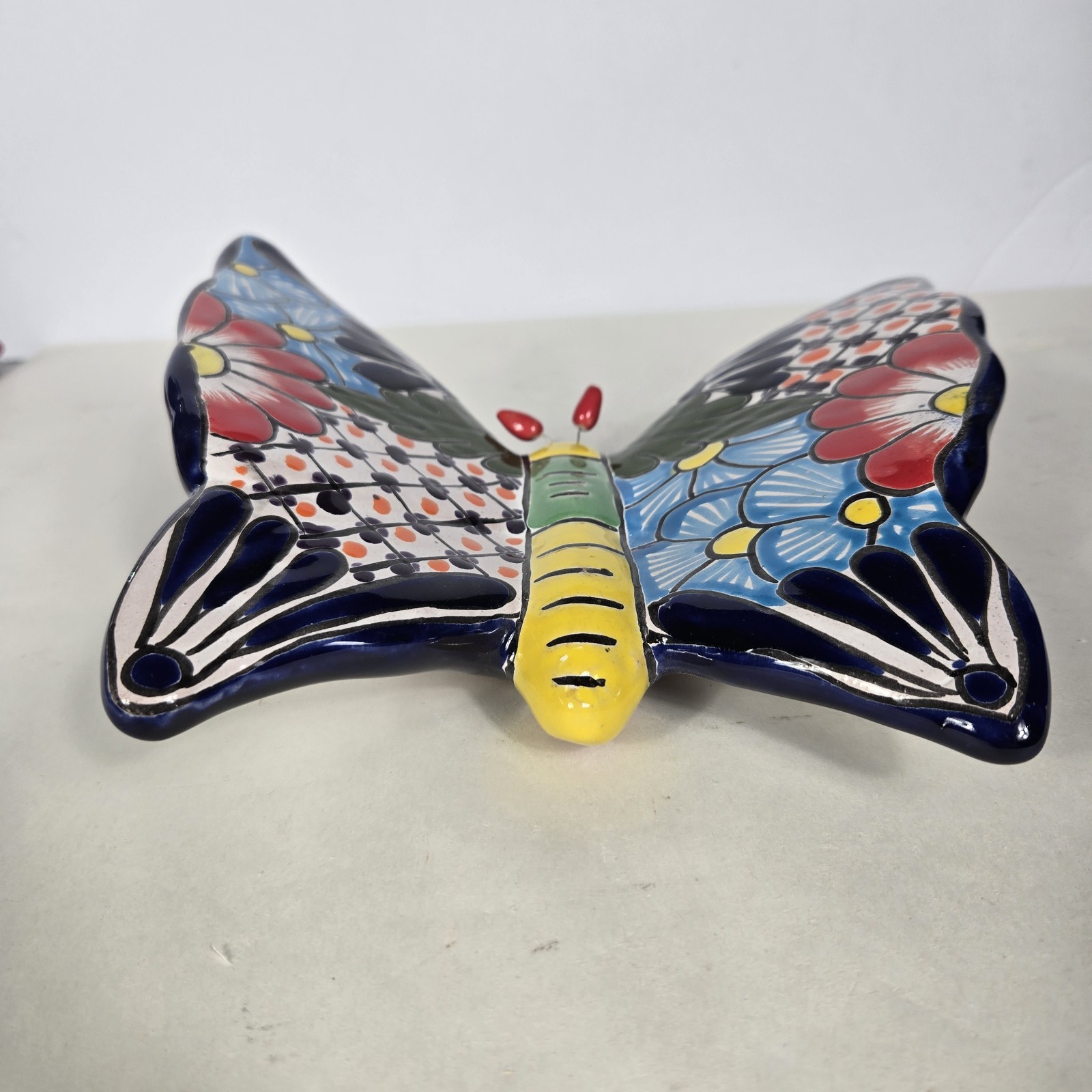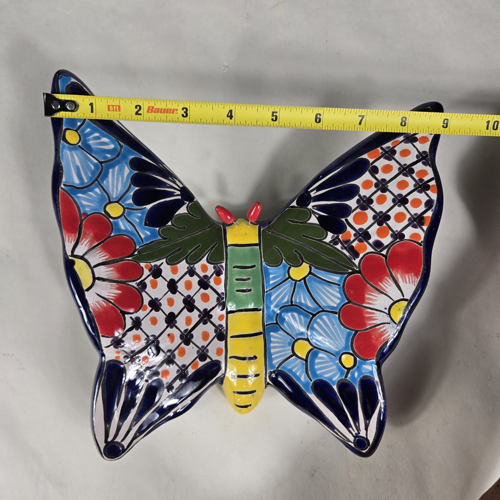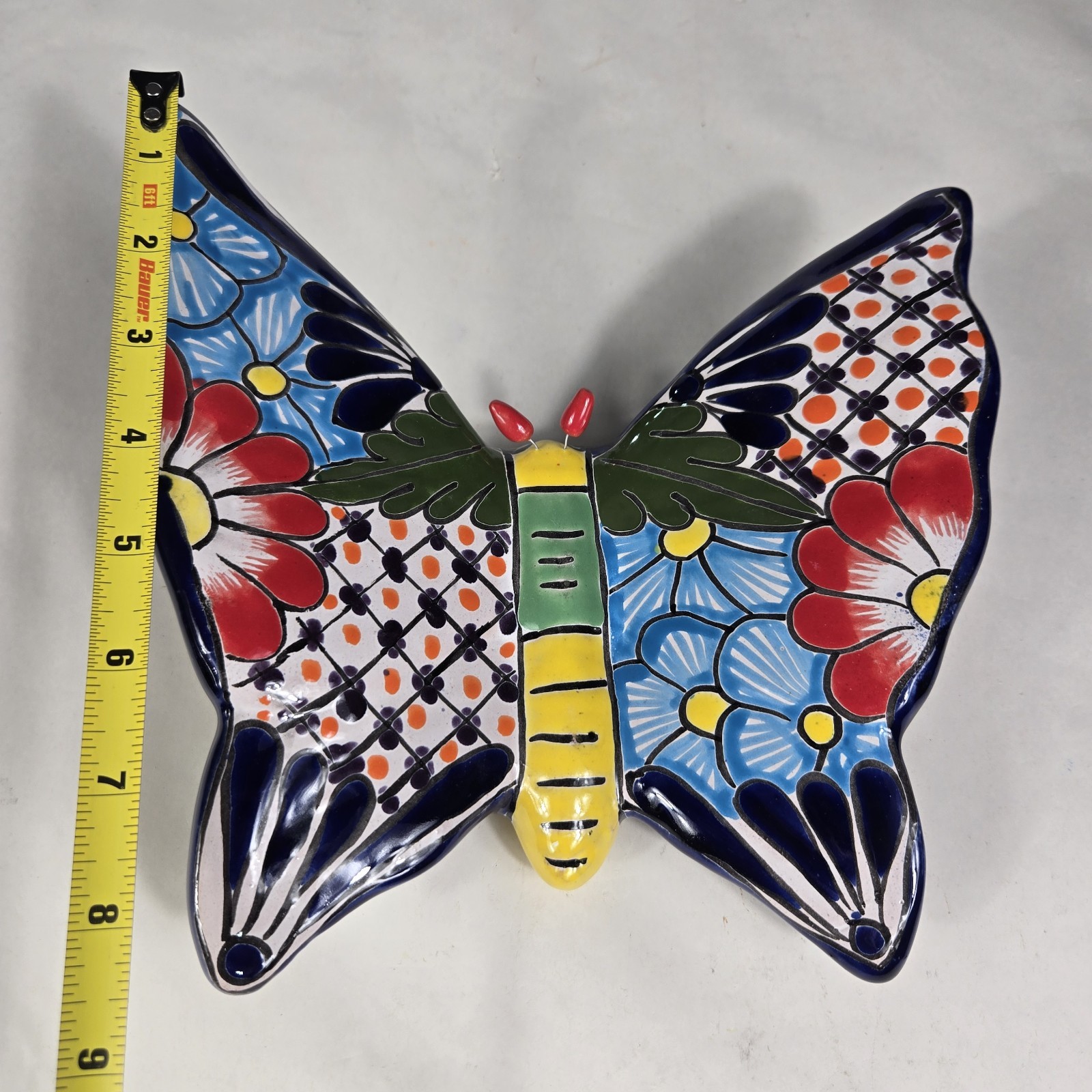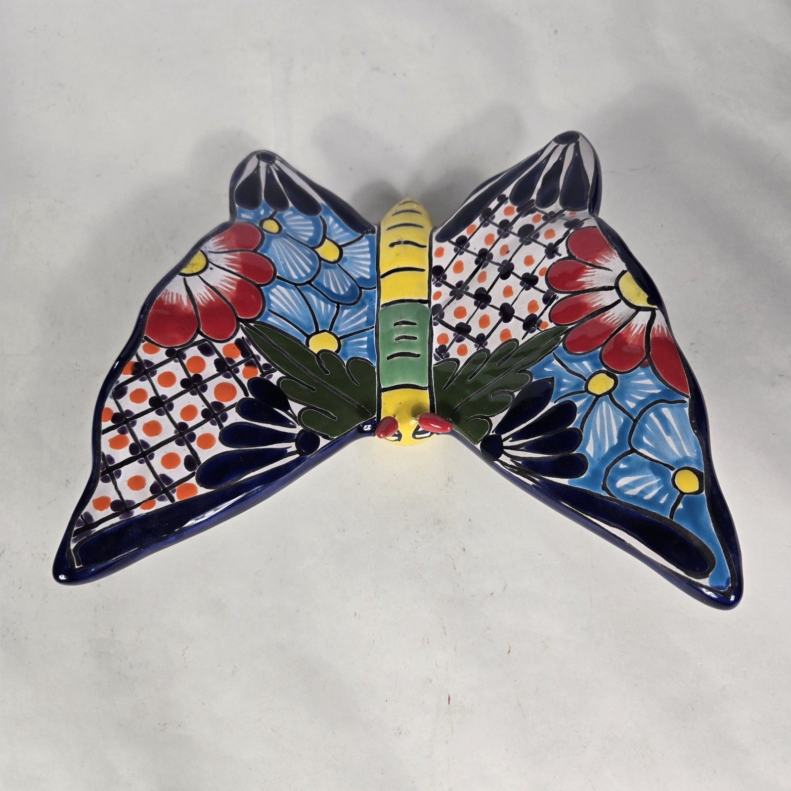 Talavera Butterfly Mexican Handcrafted Art Wall Hanging 9 X 8.5 Inches Tall