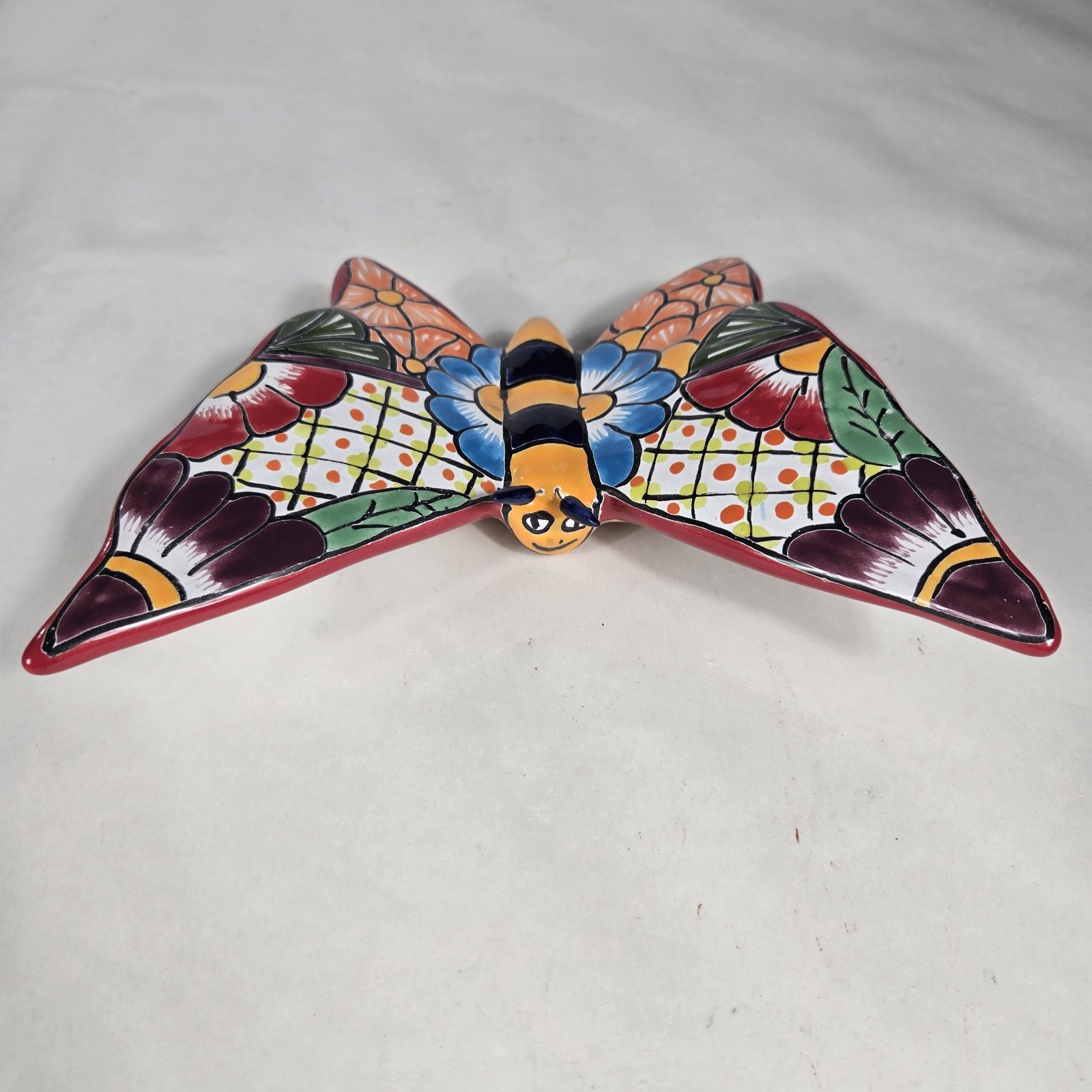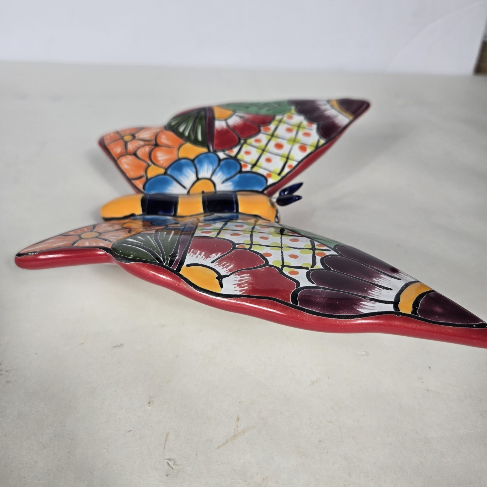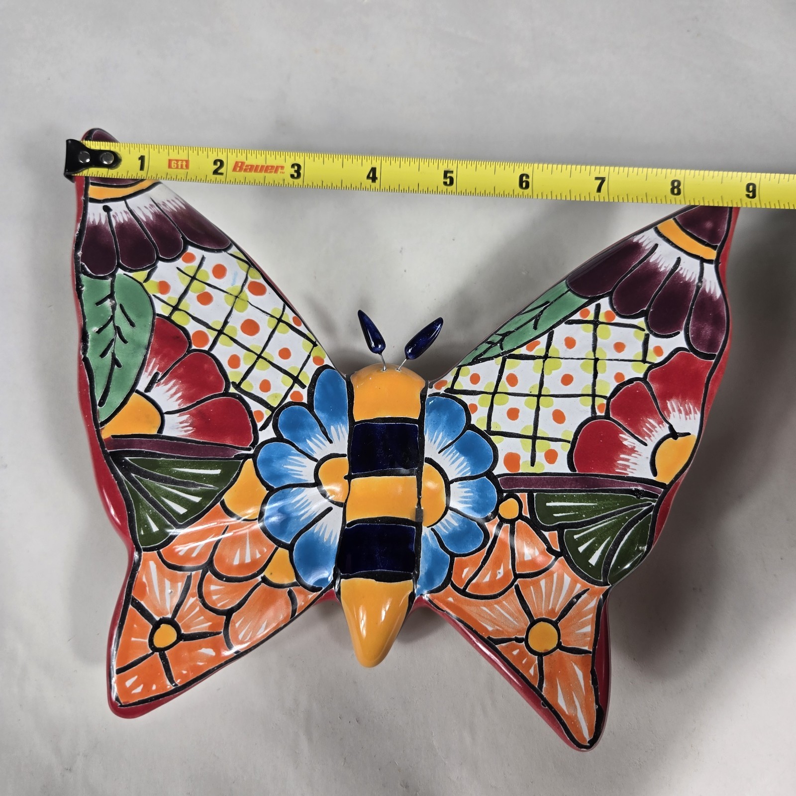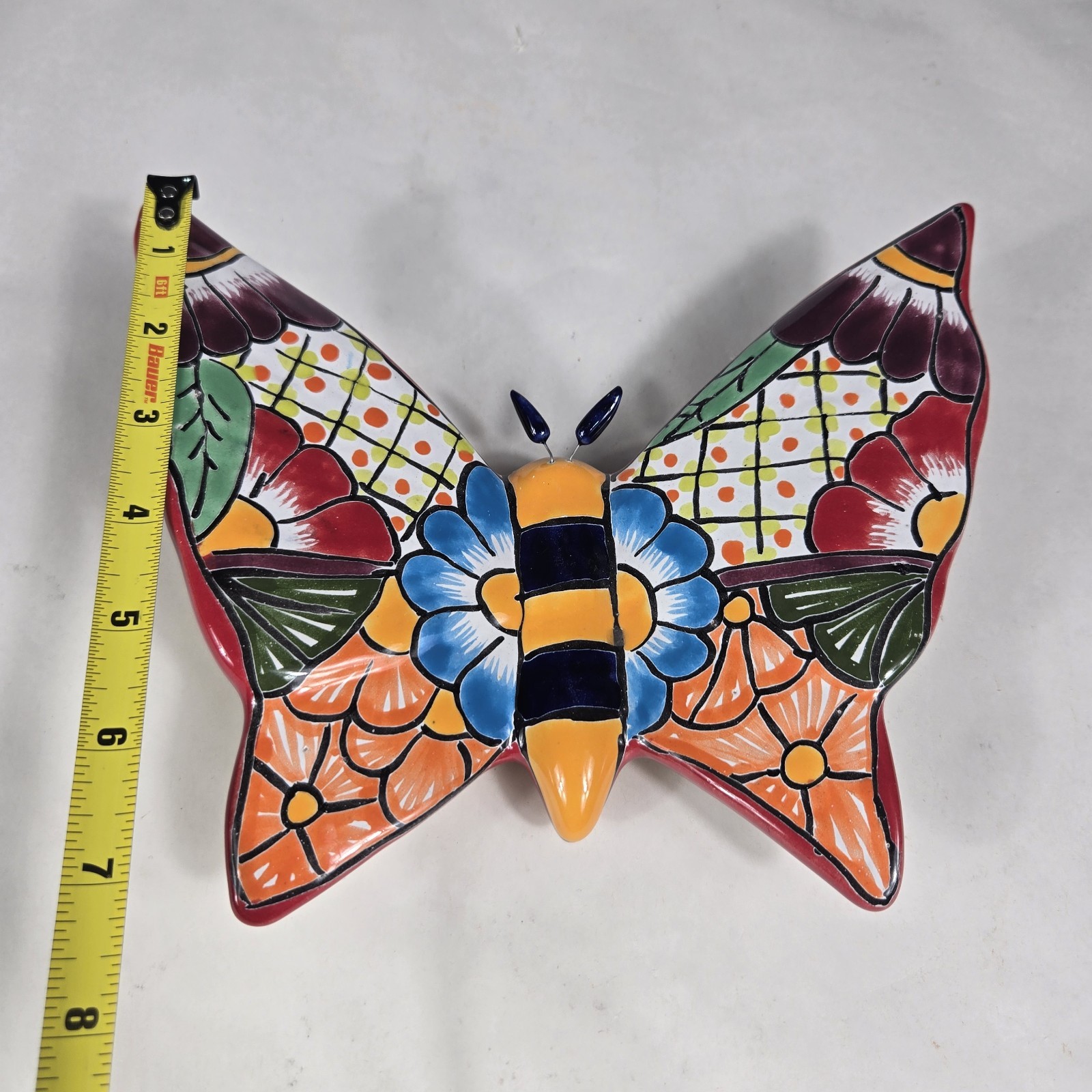 Talavera Butterfly Mexican Handcrafted Art Wall Hanging 9 X 8 Inches Tall
