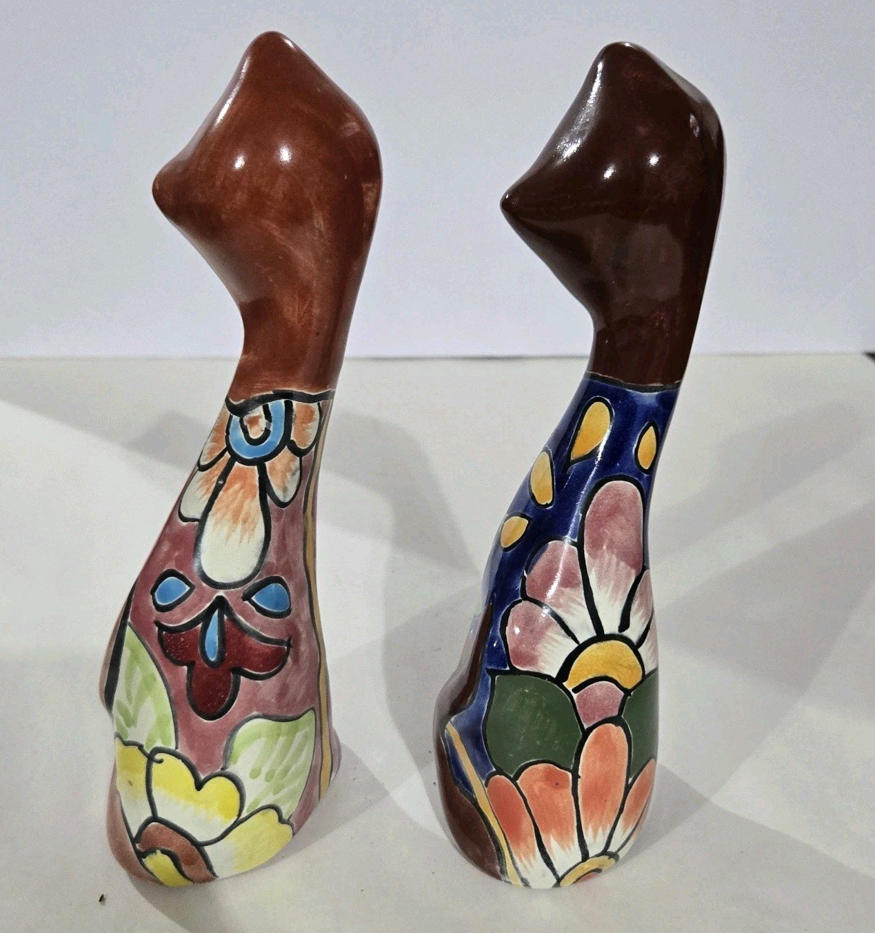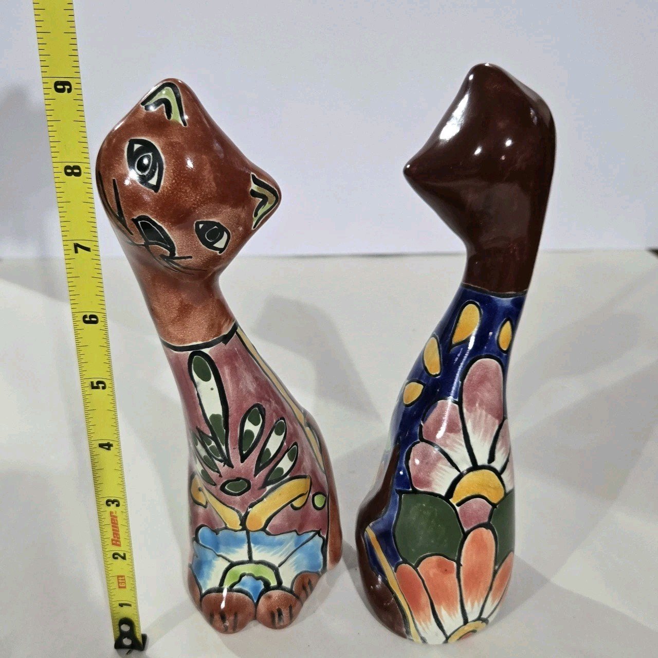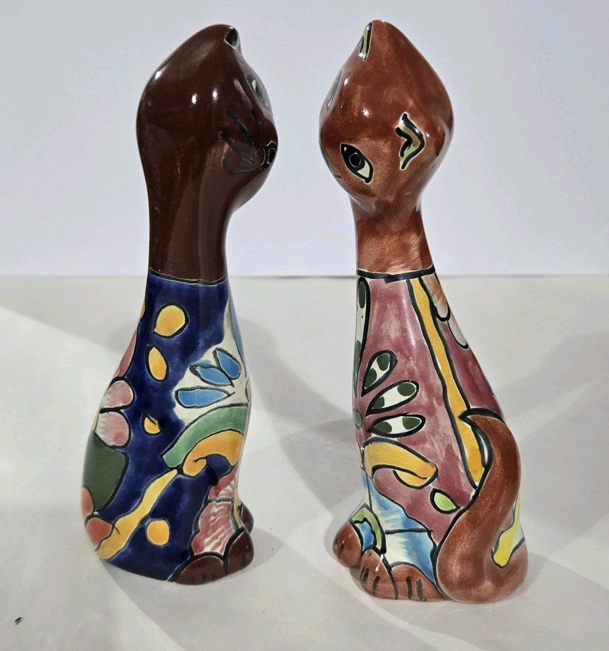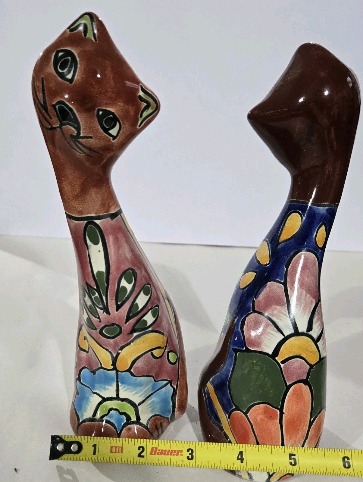 Talavera Cat Pair Figurines Mexican Art Handmade