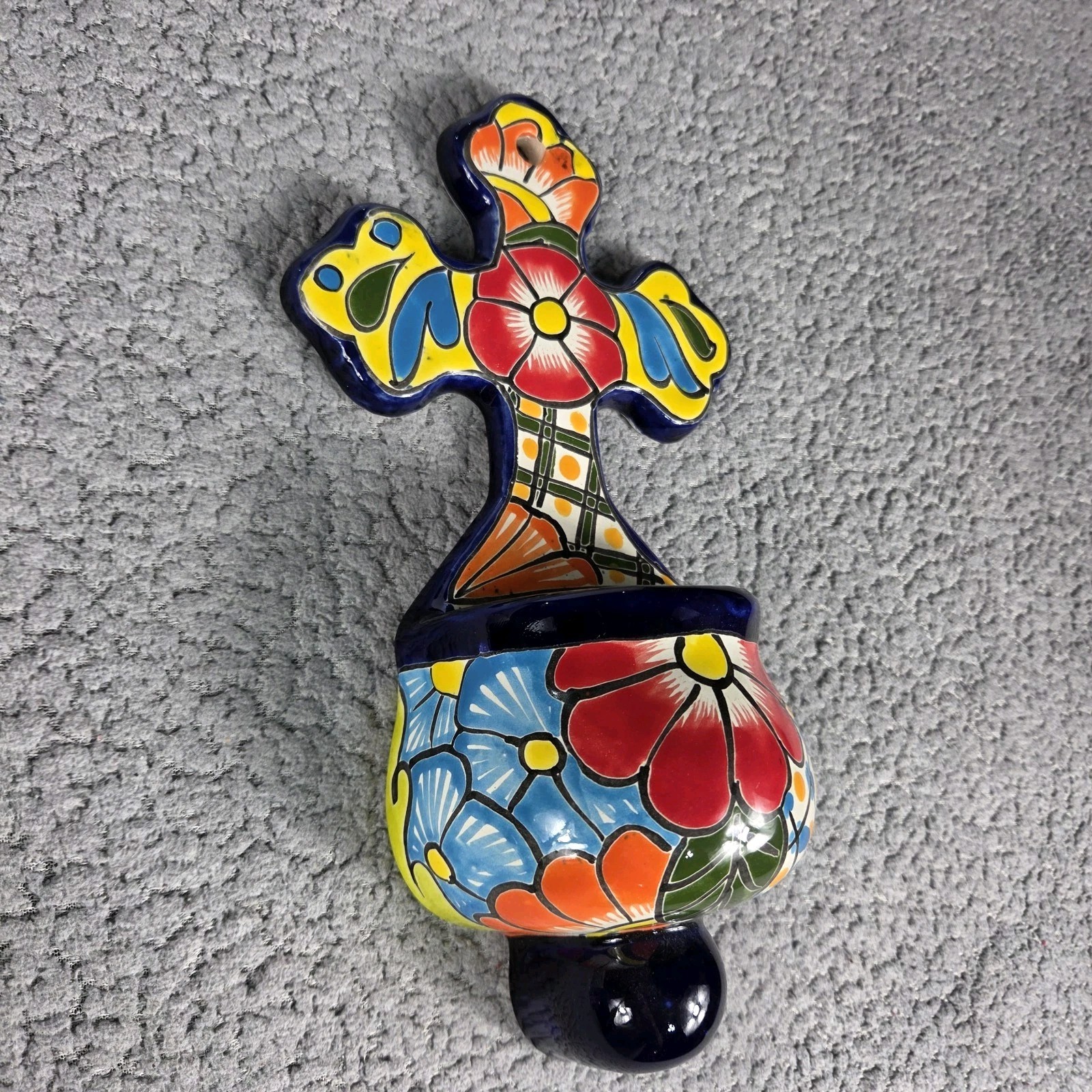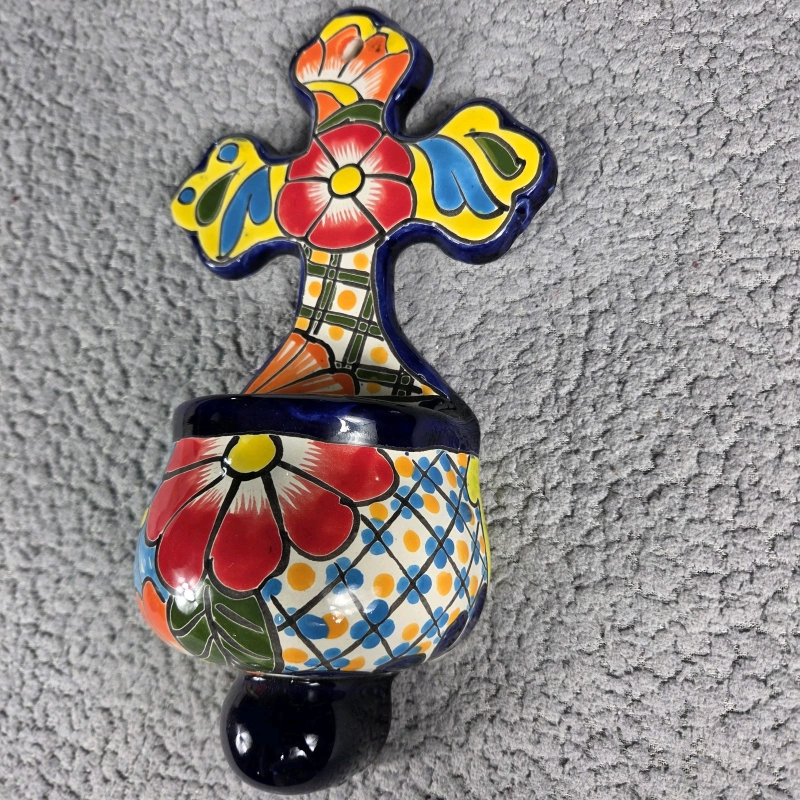 Talavera Colorful Holy Water Font Mexican Art 5.5 X 10.5 Inches Tall