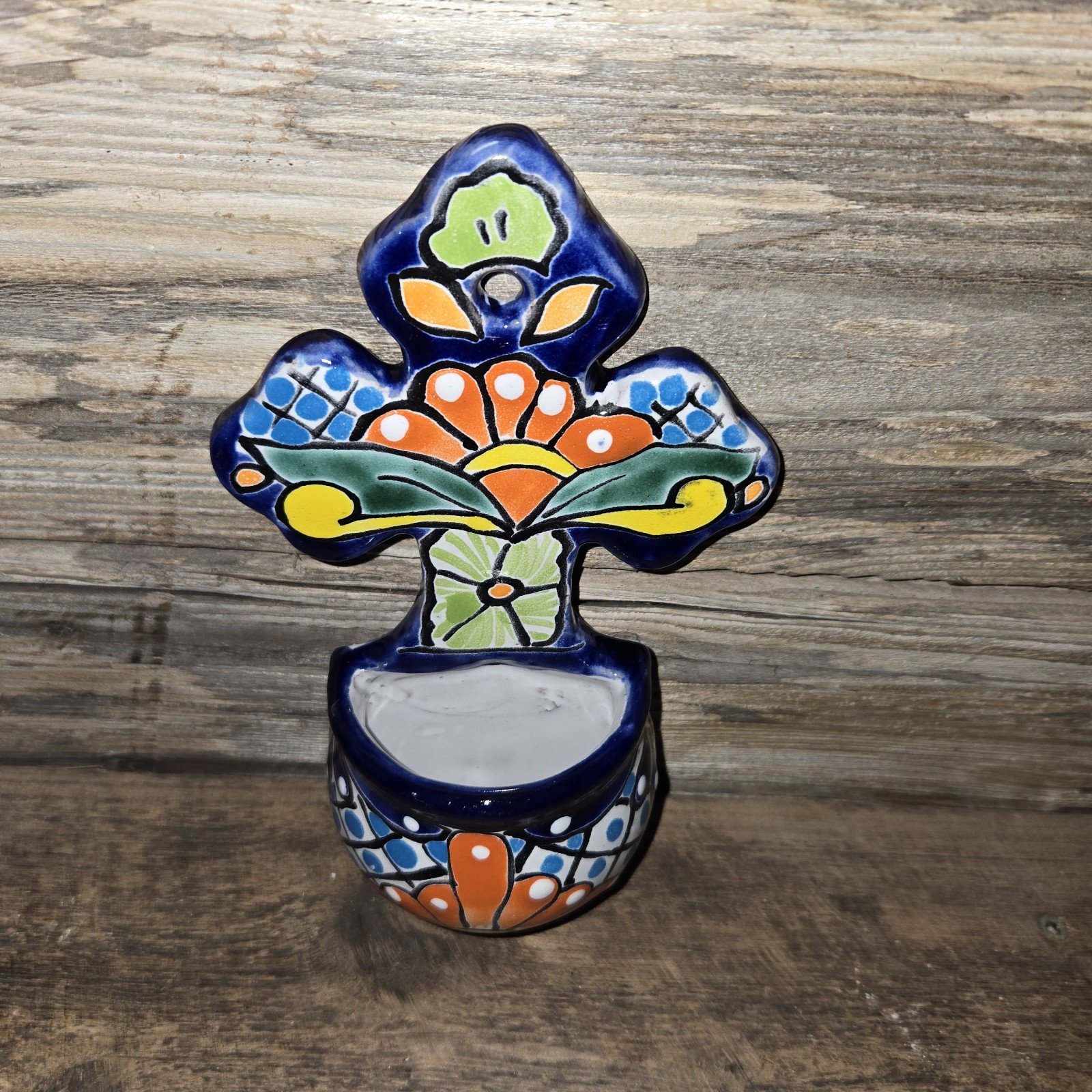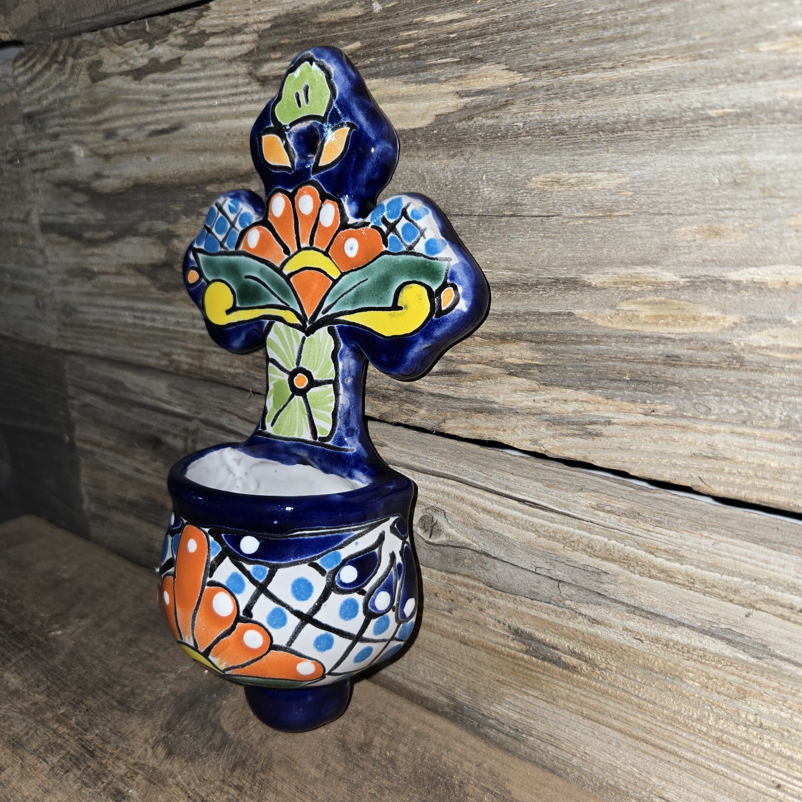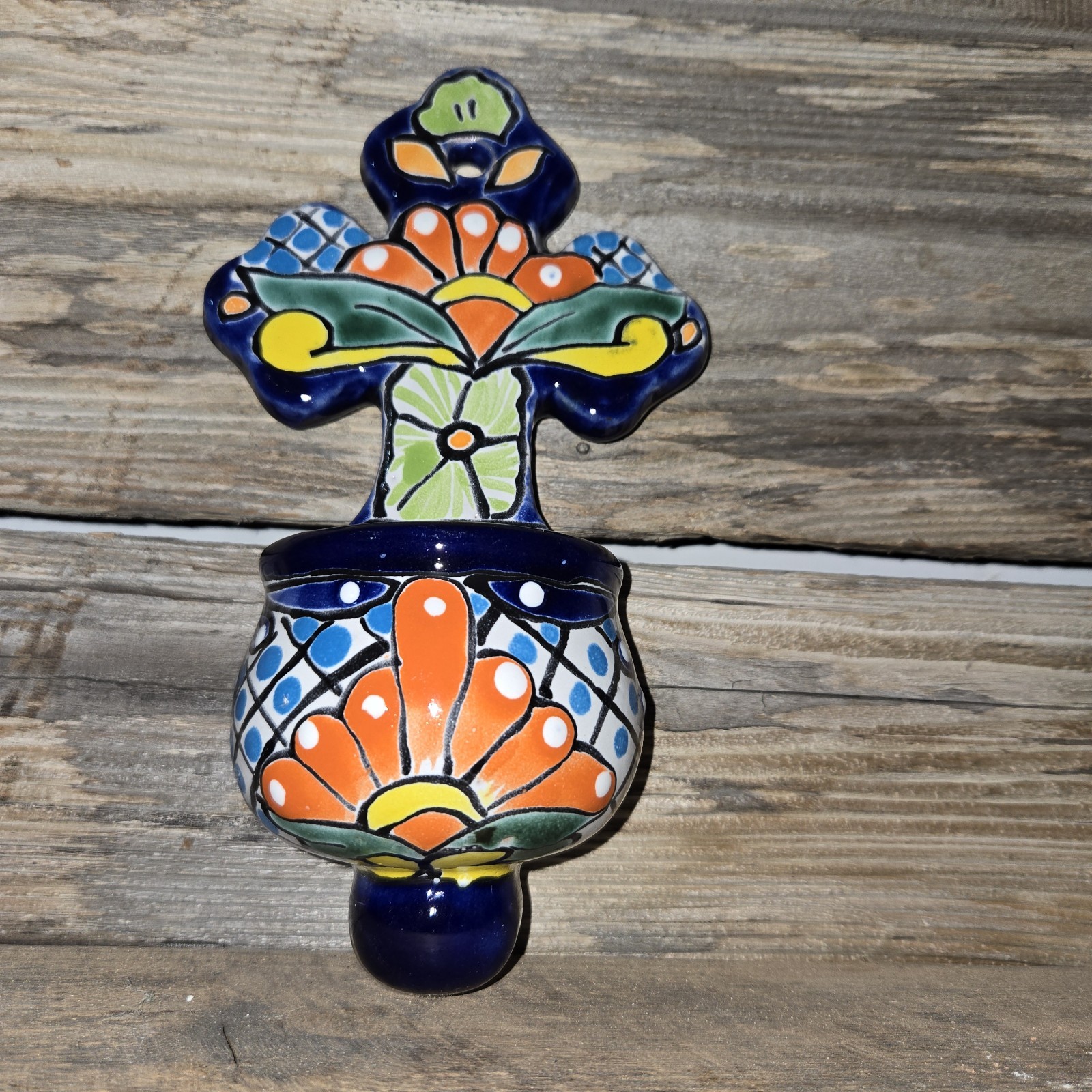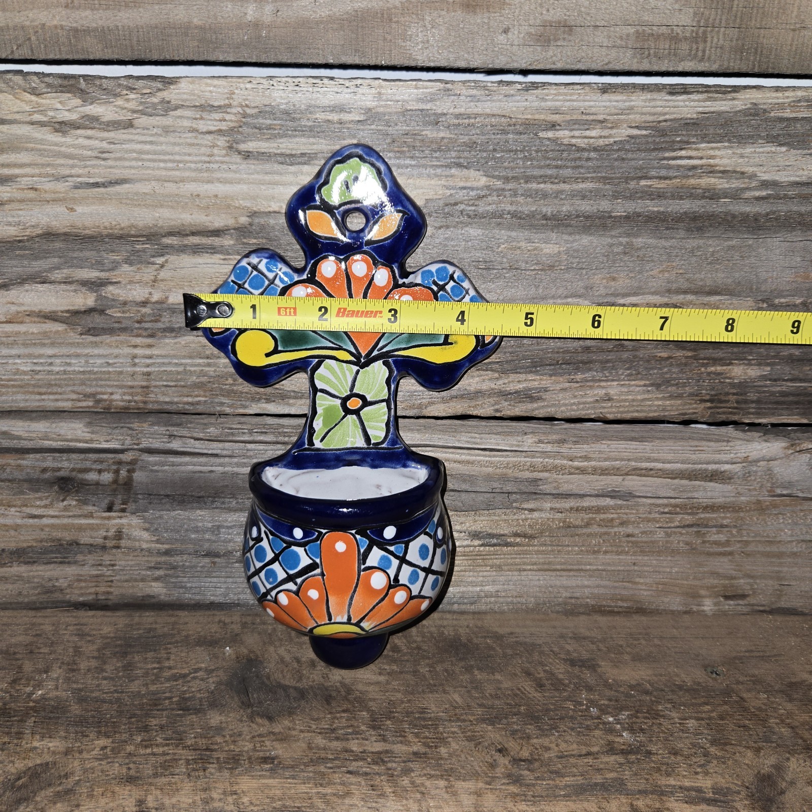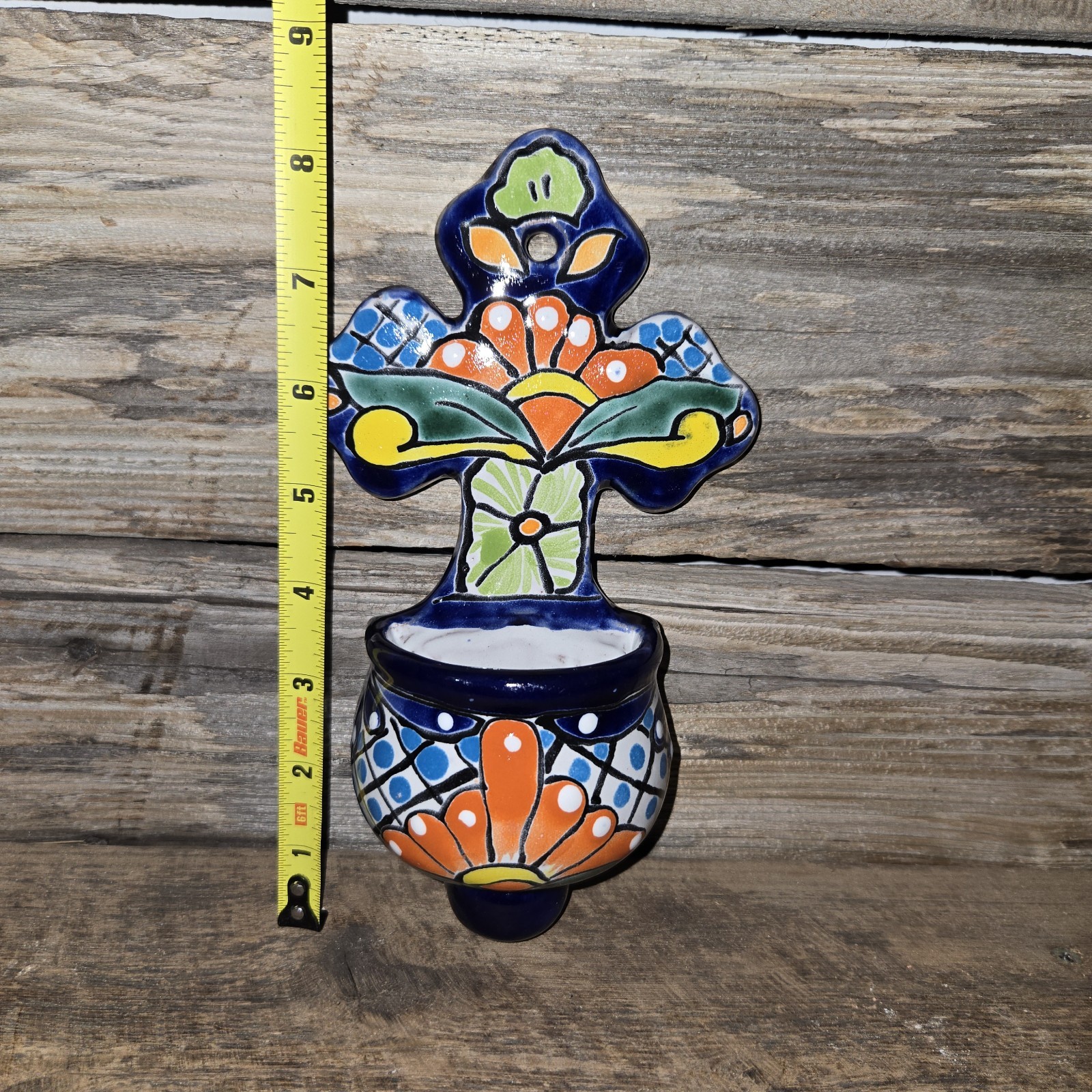 Talavera Colorful Holy Water Font Mexican Art 5.5 X 8.5 Inches Tall