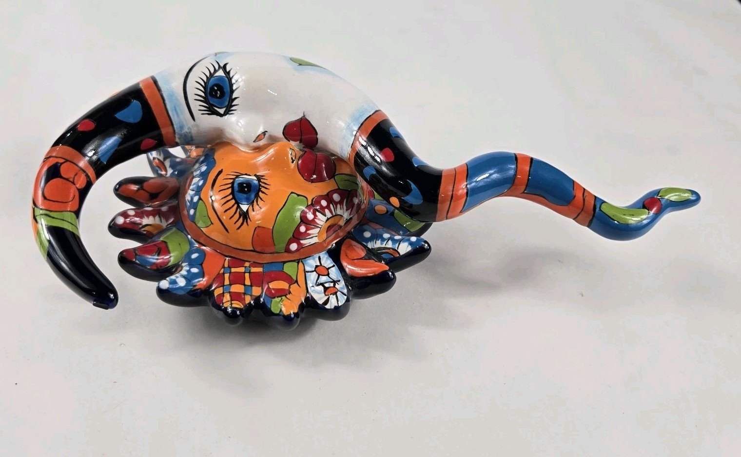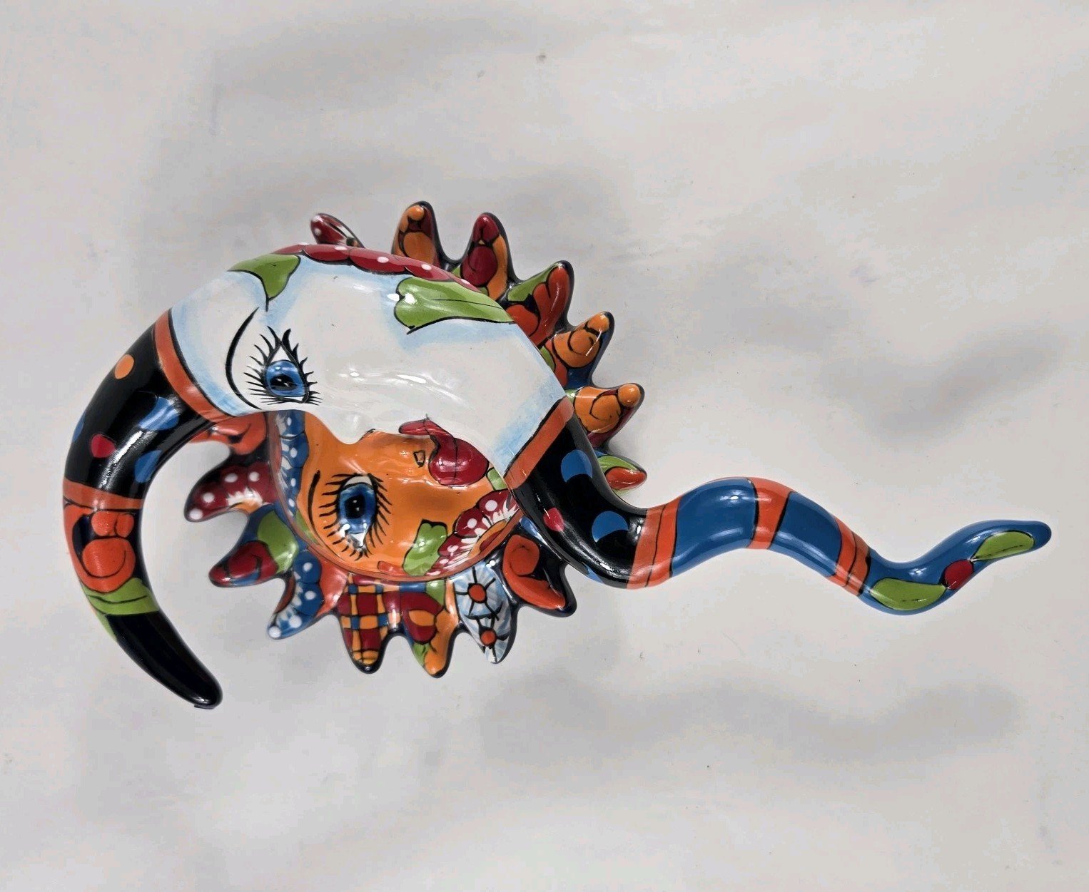 The Talavera Eclipse Mexican Handmade Art Wall Hanging is a beautiful and unique piece of Mexican art. Measuring 6" wide and 10" tall, this handmade wall hanging is a perfect addition to any home or collection. Crafted in Mexico, this piece showcases traditional Mexican culture and craftsmanship. The Talavera brand ensures quality and authenticity, making it a special and meaningful piece for any art enthusiast or collector.