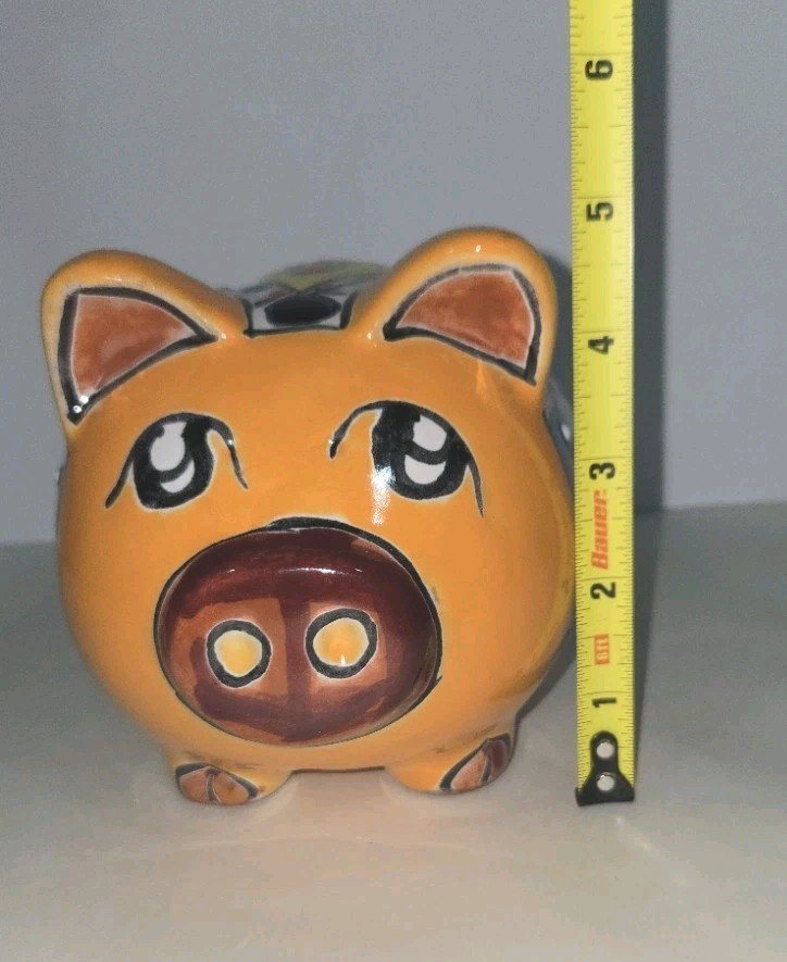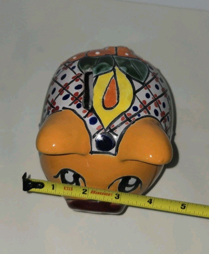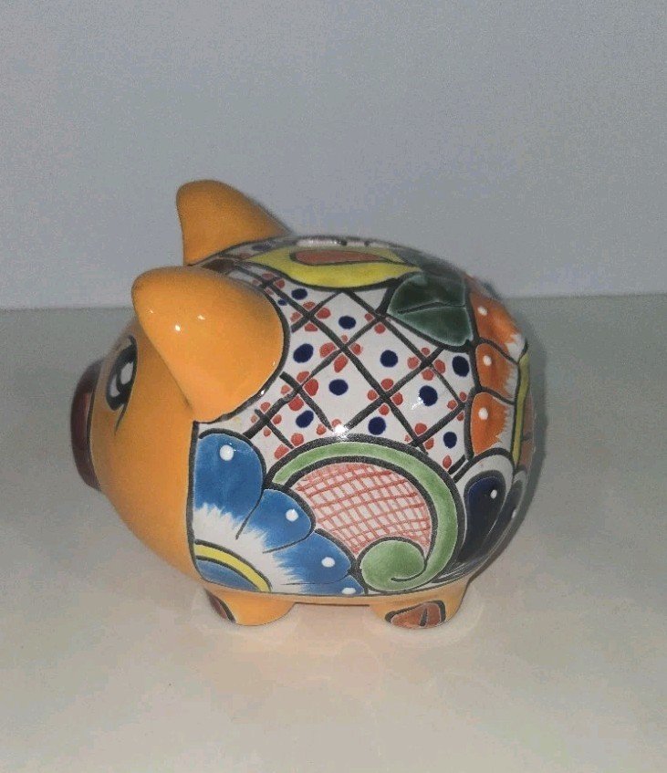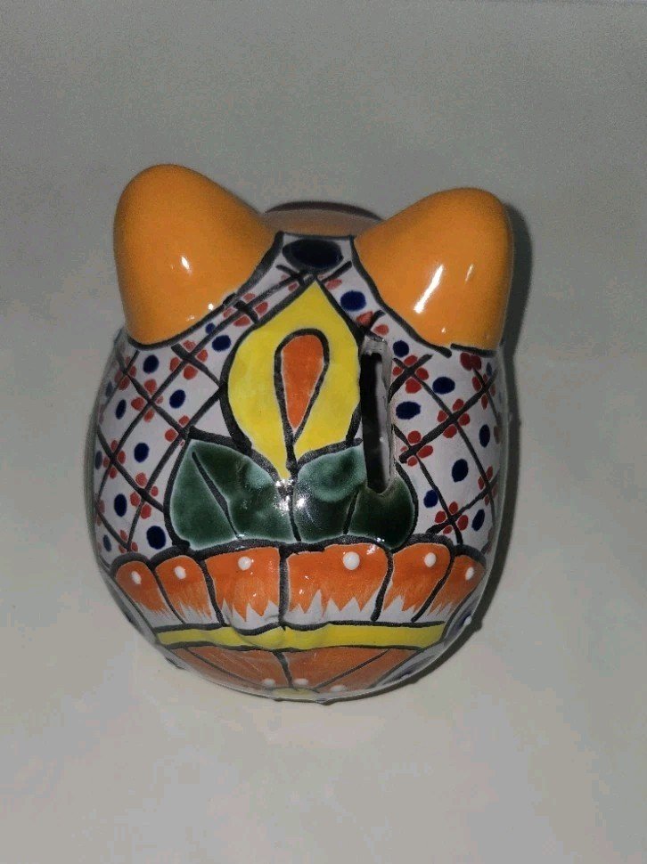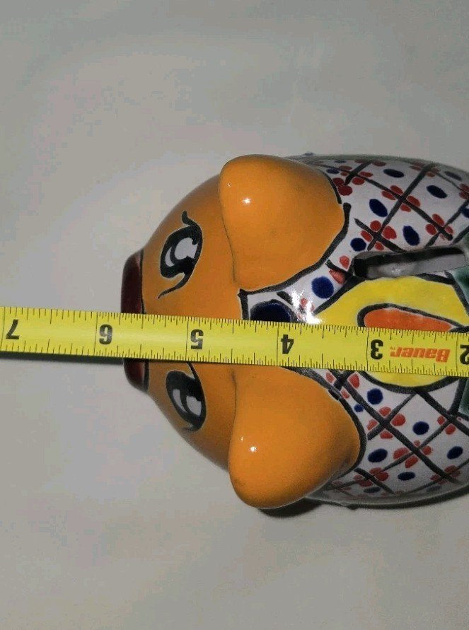 This Talavera hand-painted piggy bank showcases the vibrant and intricate Mexican artistry that Talavera pottery is known for. Handmade in Mexico, this piggy bank is a unique collectible piece that beautifully represents Mexican culture. Standing at 5x5.5x6 inches, this Talavera creation adds a touch of authenticity and artistry to any collection or space, making it a charming and functional addition to any home.