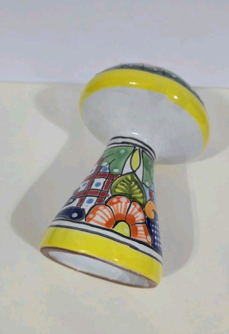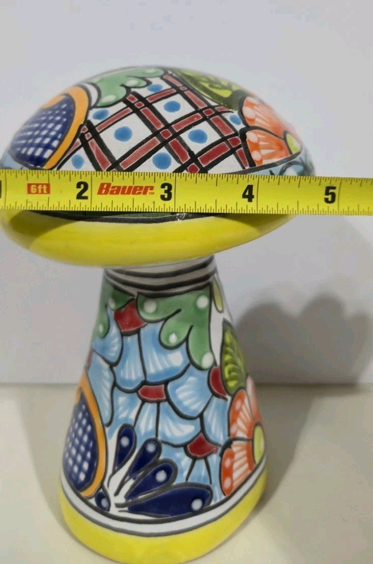 The Talavera Mushroom Figurine is a handmade piece of Mexican art, showcasing the unique craftsmanship and cultural influence of Mexico. This figurine depicts a whimsical mushroom design, adding a touch of charm and elegance to any collection or space. With its traditional Talavera style and Mexican heritage, this figurine is a perfect representation of the rich cultural traditions and artistry of Mexico.