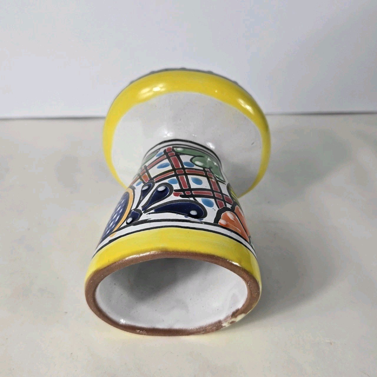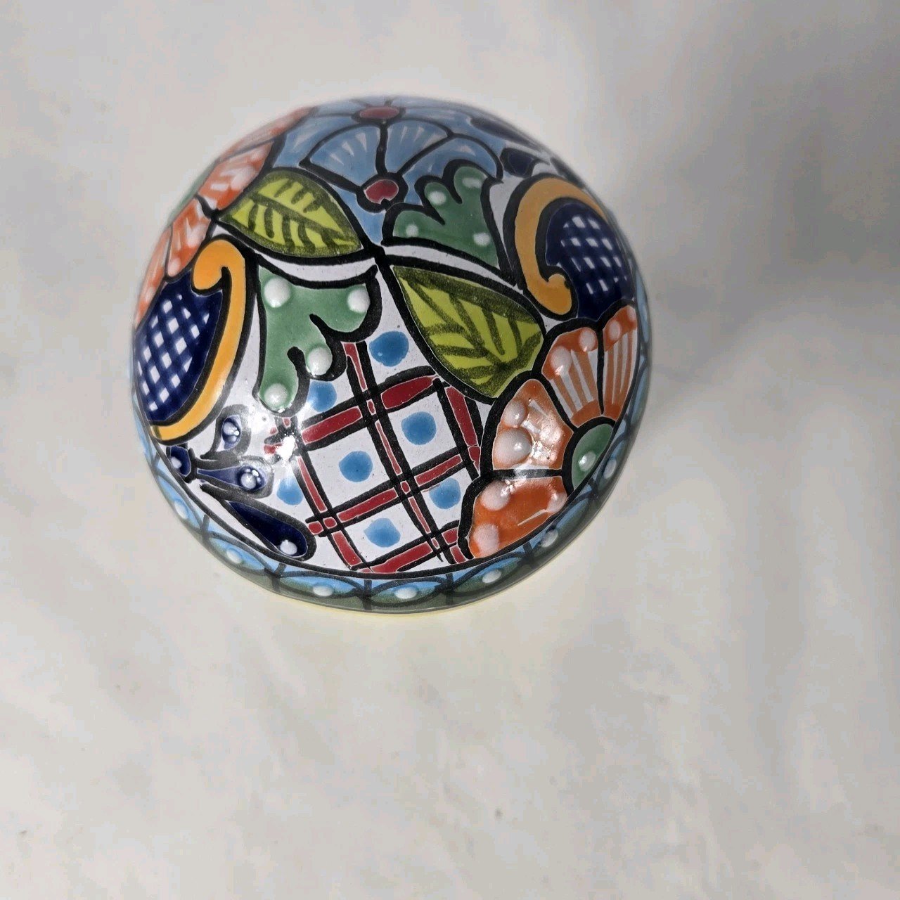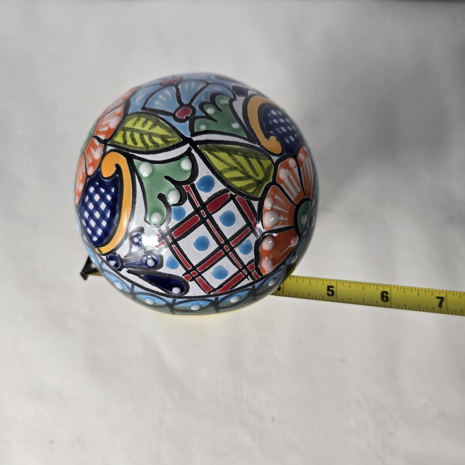 The Talavera Mushroom Mexican Pottery Art Home Decor is a handmade piece of art originating from Mexico. This intricately hand-painted Talavera pottery features vibrant colors and unique designs inspired by Mexican culture. Measuring 6.5 x 4.5 inches, this piece adds a touch of authenticity and charm to any home decor setting, making it a perfect collectible item for those with a love for Latin American craftsmanship.