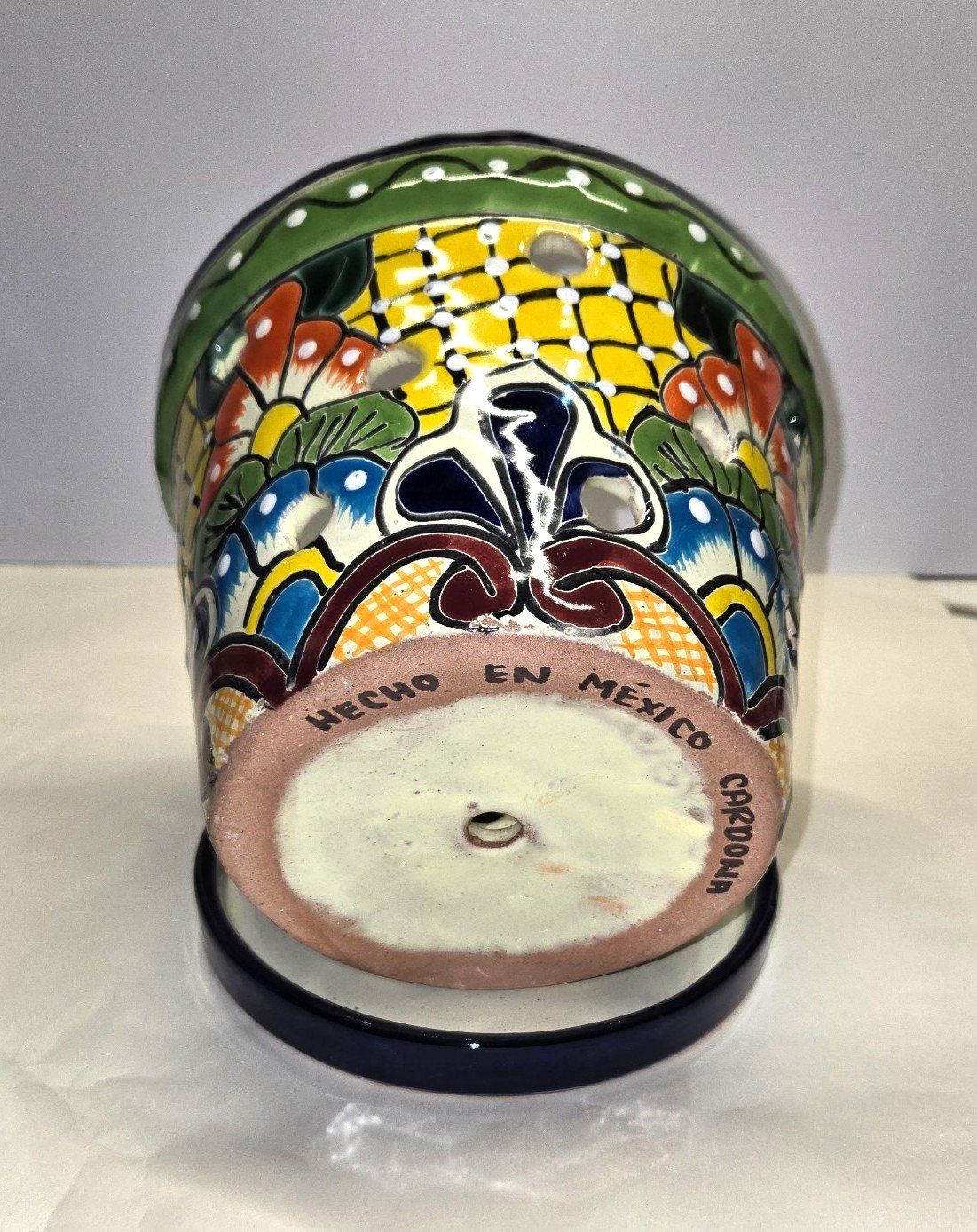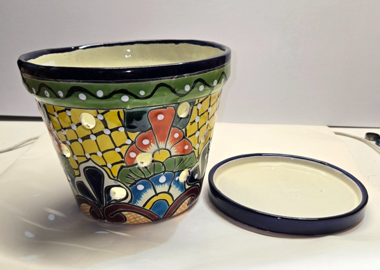 The Talavera Orchid Planter is a handmade 2-piece set crafted by Mexican artisans, showcasing traditional Mexican artistry. The exquisite details and vibrant colors reflect the rich cultural heritage of Mexico. Measuring 8 x 6.75 inches, this unique planter set makes a stunning accent piece for any space, adding a touch of authenticity and charm to your decor. Made with care and precision, these planters truly capture the essence of Mexican craftsmanship and design.