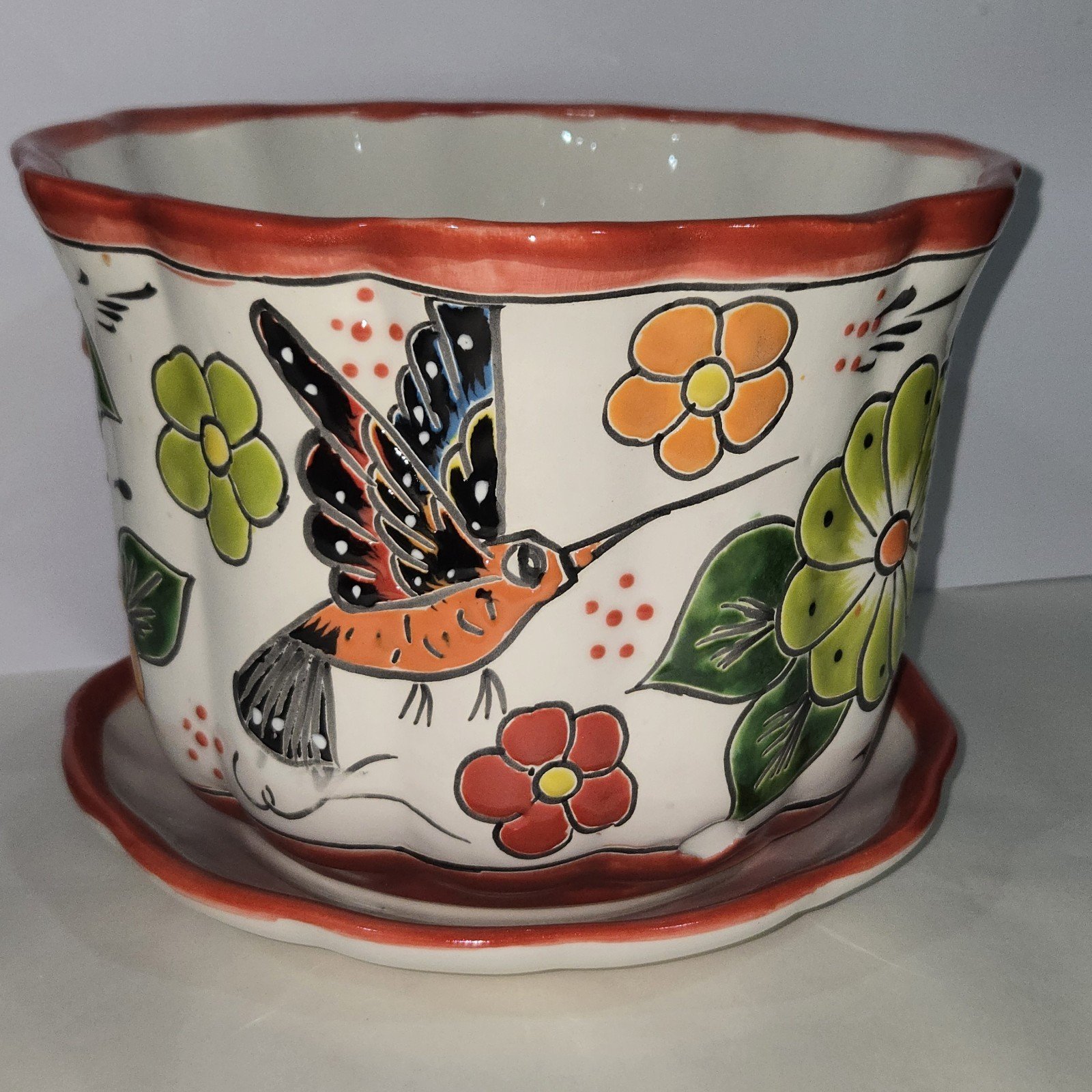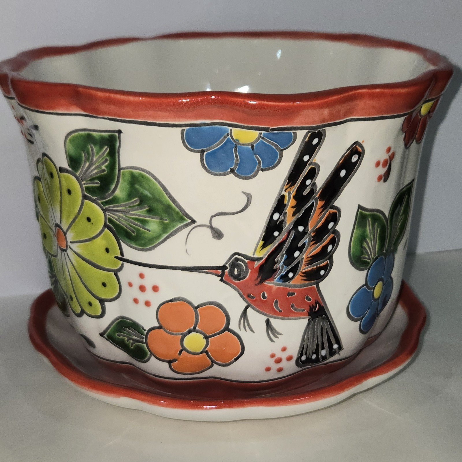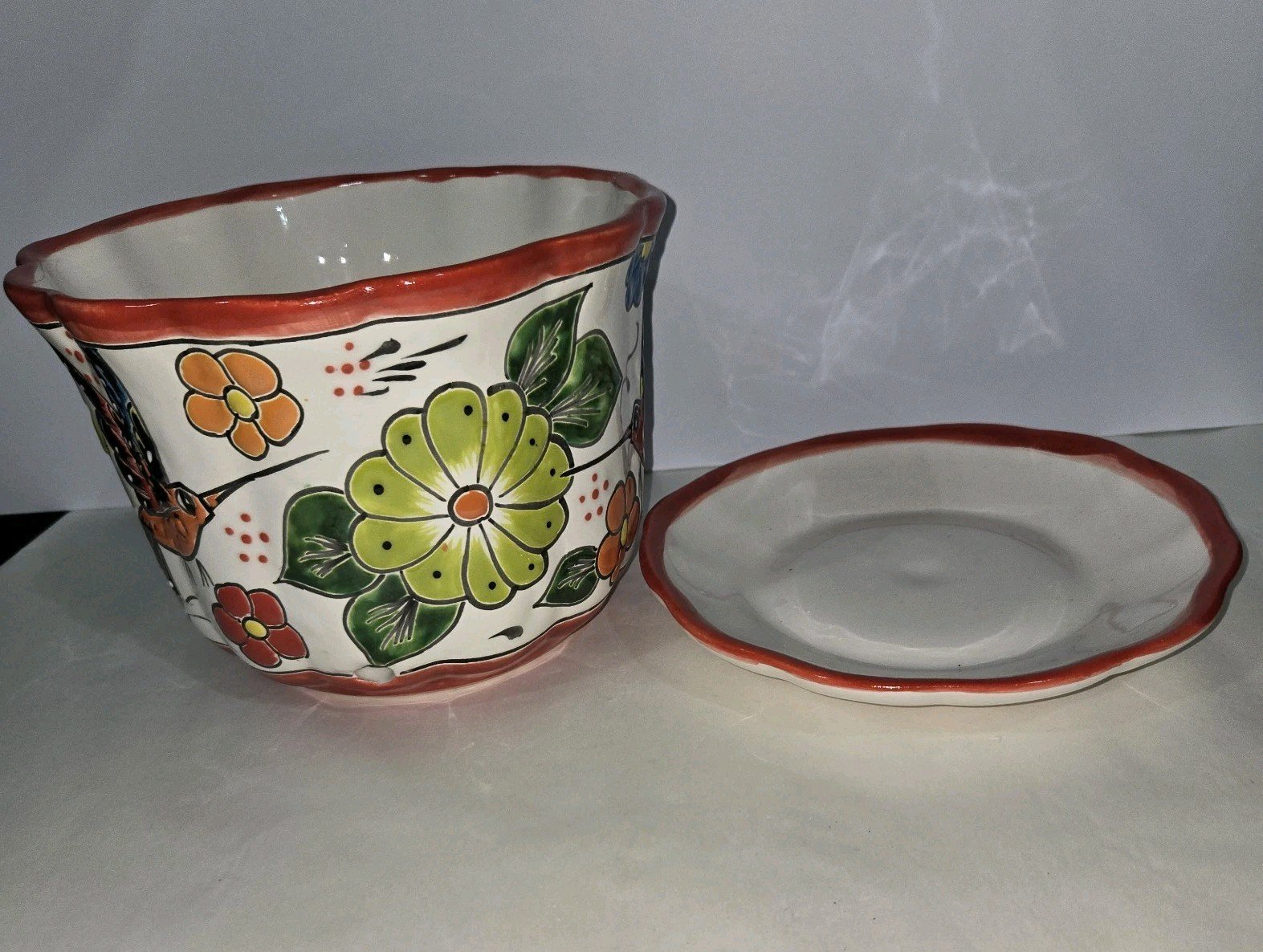 Talavera Pottery Handmade 2 Piece Set Planter Mexican Art 8.75 x 6.75 inches