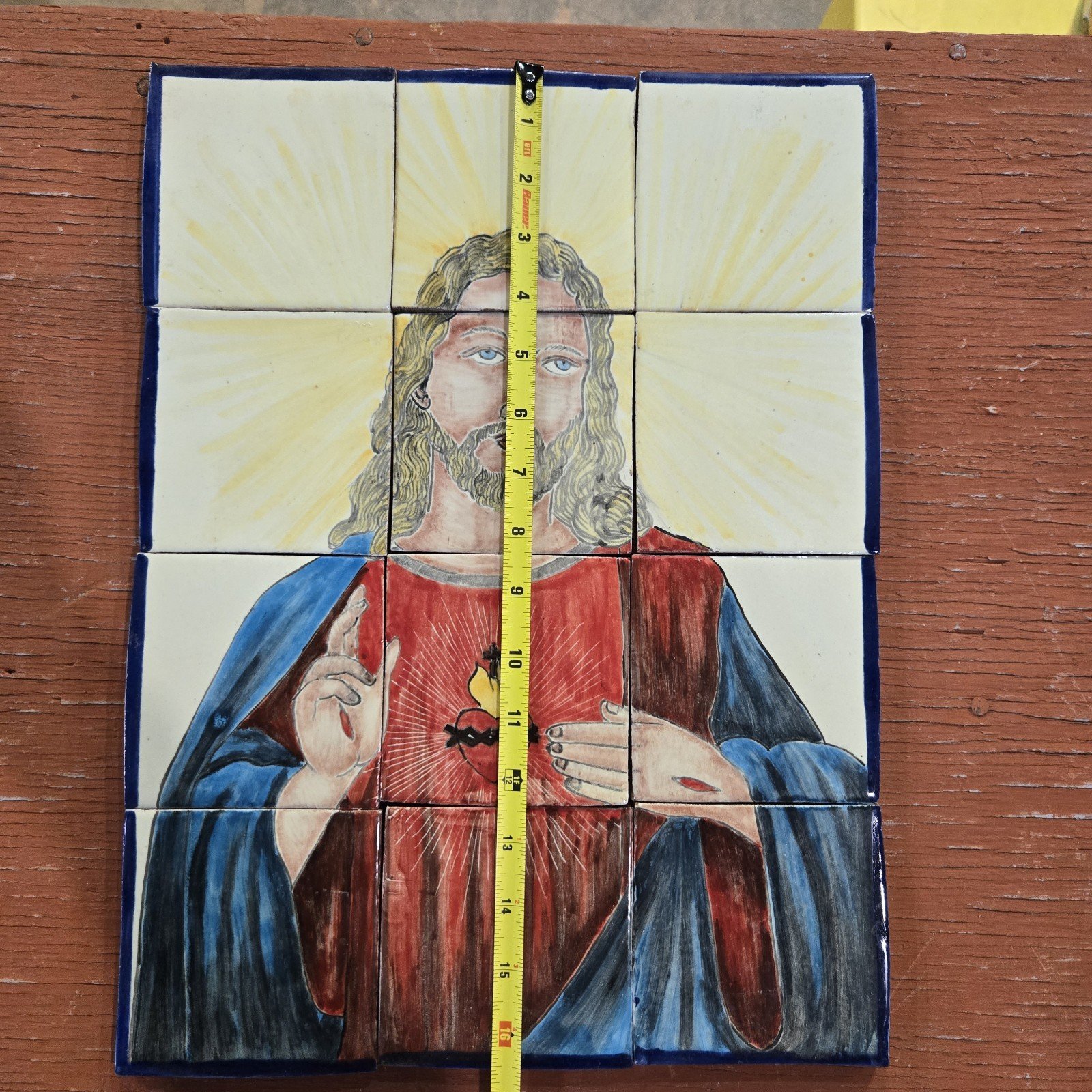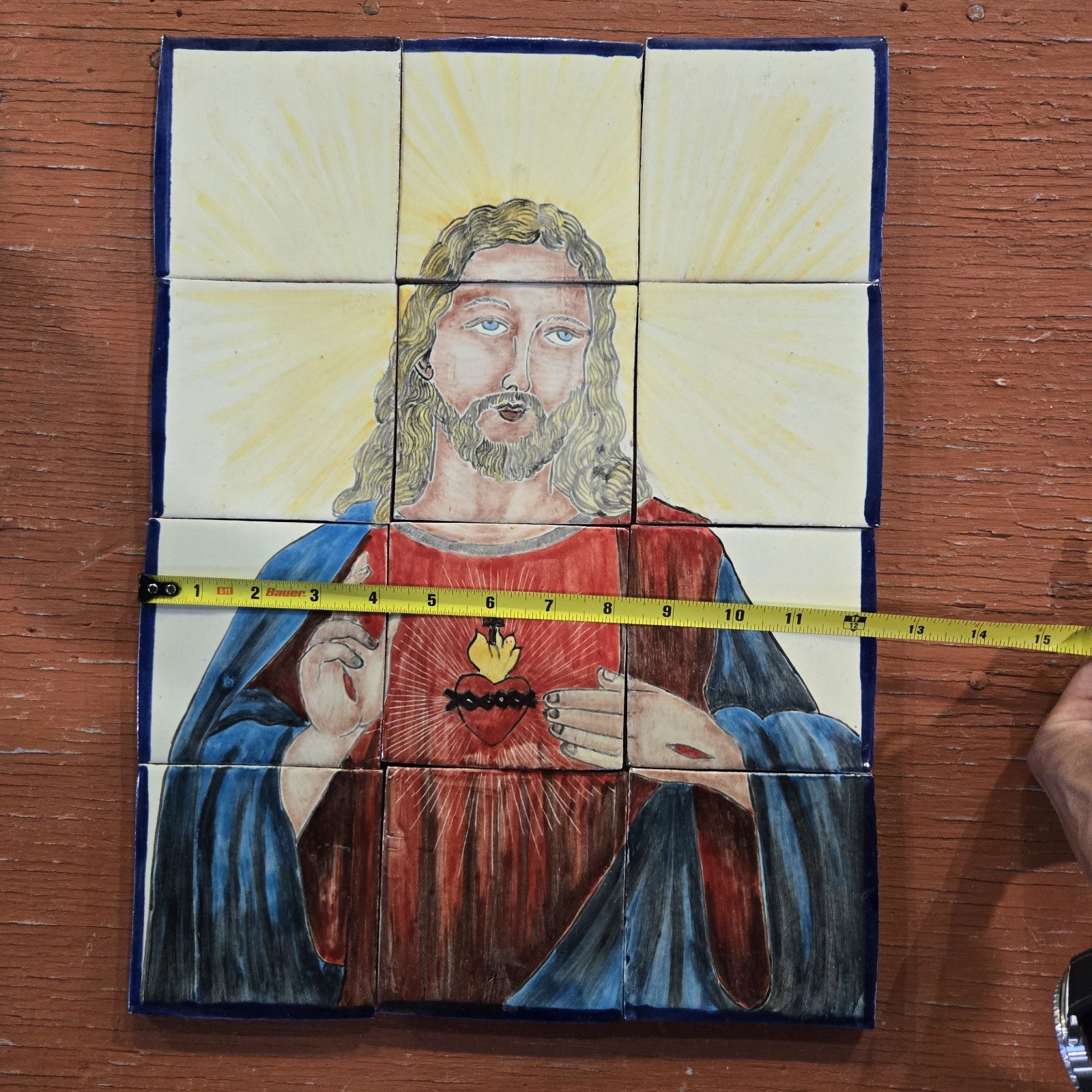 This product is a set of 12 4x4 inch ceramic tiles featuring a Mexican Talavera design, specifically depicting the Sacred Heart. The multicolor tiles are suitable for both interior and exterior wall use, originating from Mexico. These decorative tiles add a touch of Mexican artistry and tradition to any space, making them a unique and eye-catching addition to your home or garden.